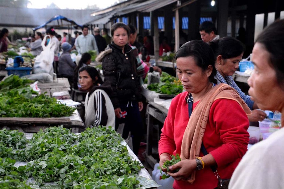 태국과 중국인들로 만원을 이루고 있다 같은지역 라오스의 새벽시장과 큰 대조를 이루고 있다.