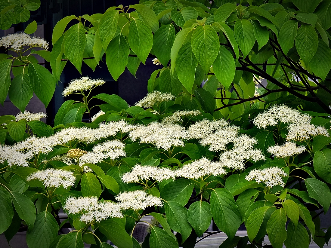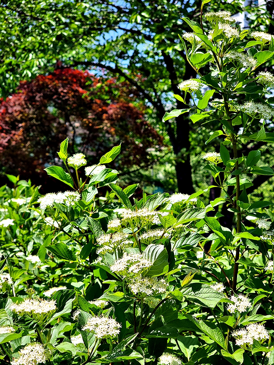 동네 산책로변 숲 속에 말채나무꽃이 하얗게 피고 있다.
