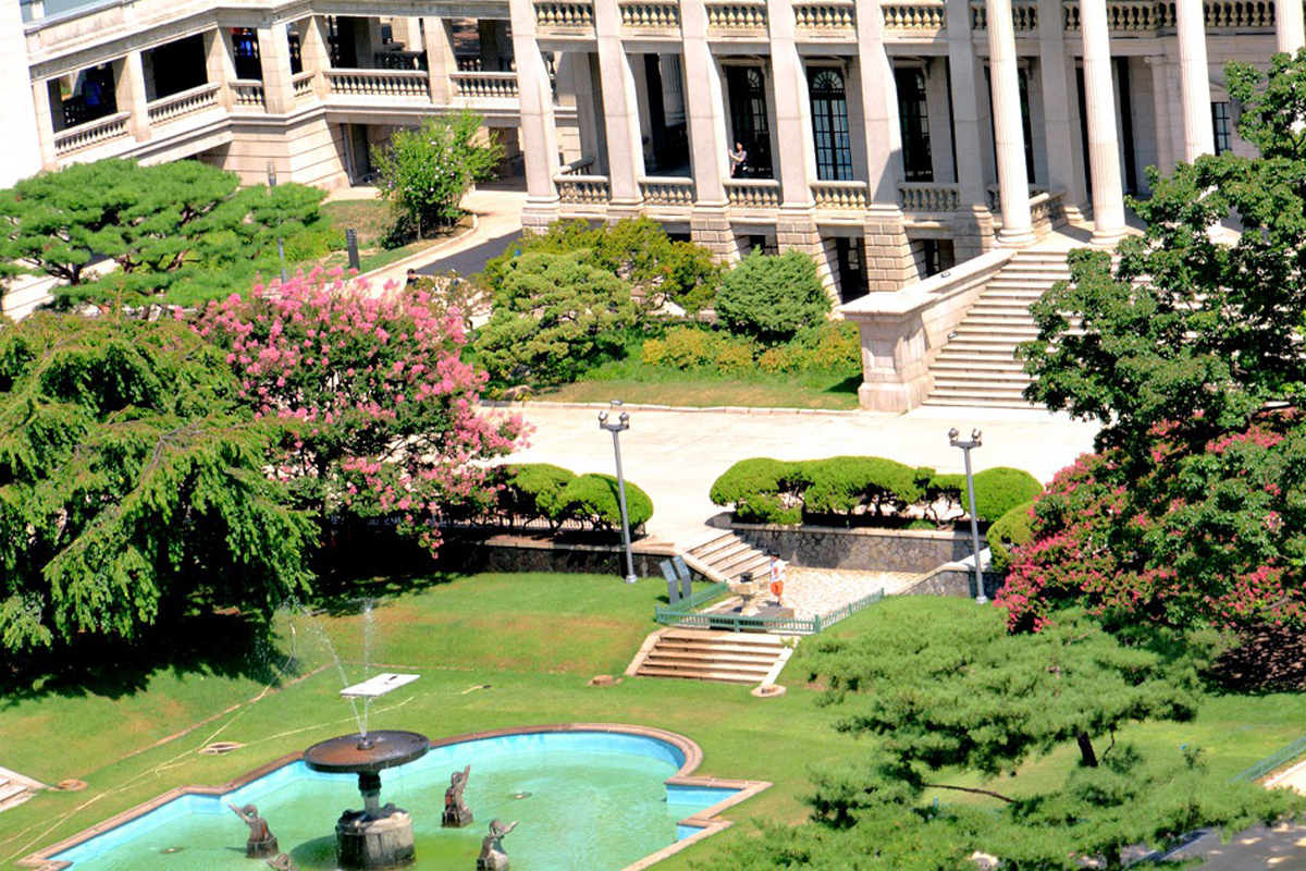 덕수궁.. 고궁 석조전과 어울어진 배롱나무꽃이 깔끔하고 아름답게 피어 있다.(촬영 22년 07월 22일)