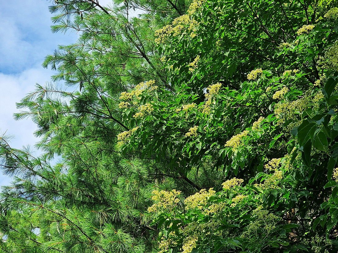 그런데 쉬나무가 많으면 설탕물을 안 줘도 되고, 오히려 채밀까지 가능하다.
