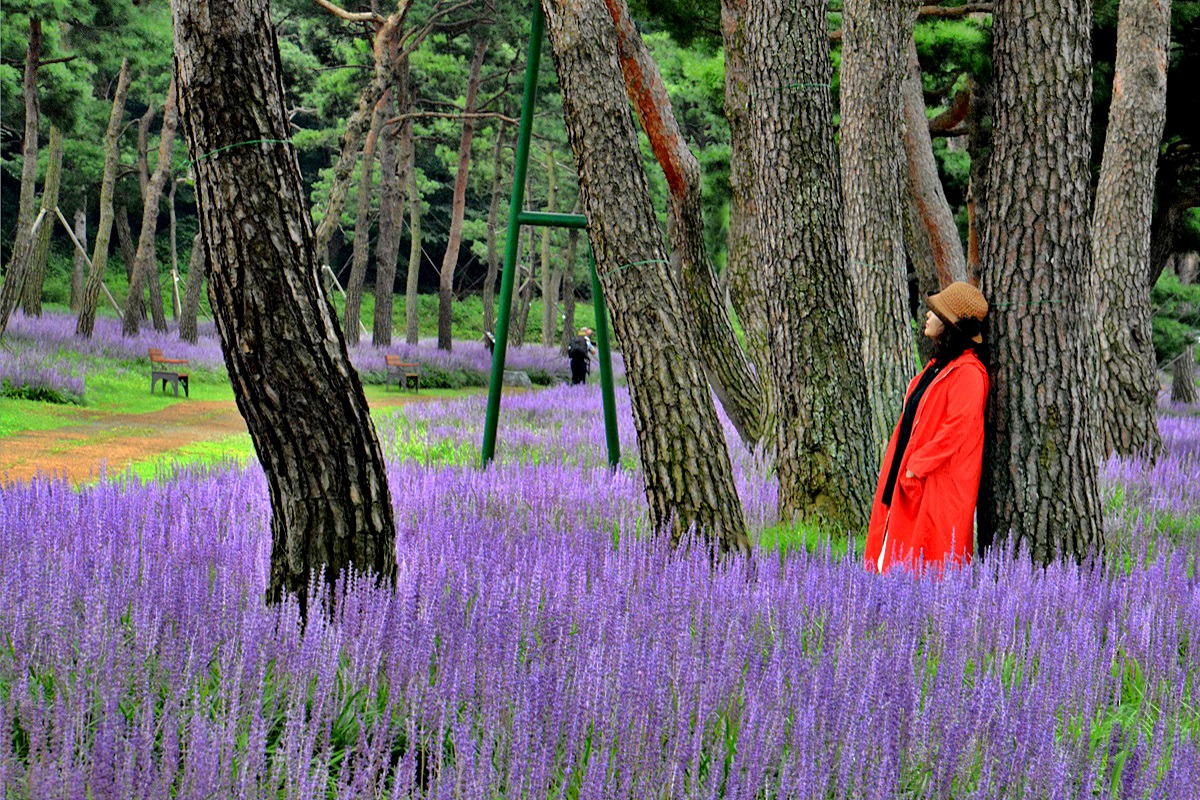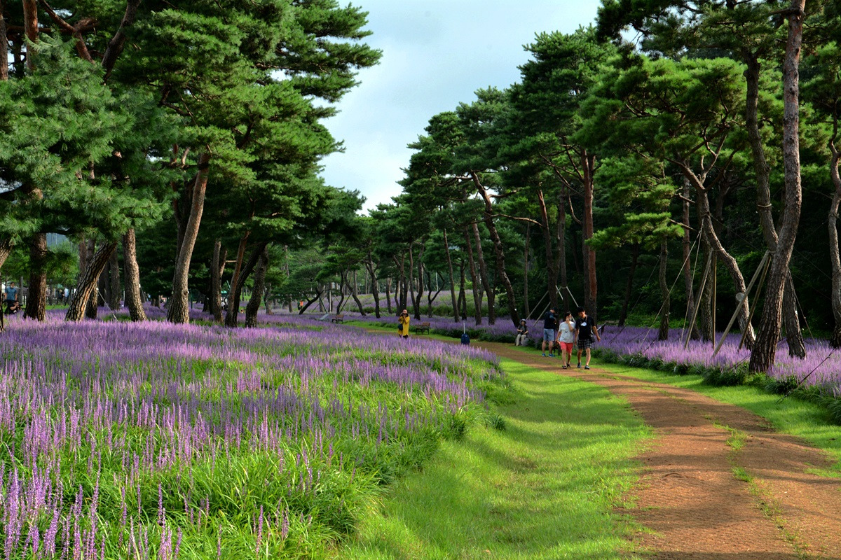 5km에 달하는 노송지대 산책로를 따라 걸으며 소나무에서 나오는 피톤치드와 맥문동의 보랏빛 향기,
