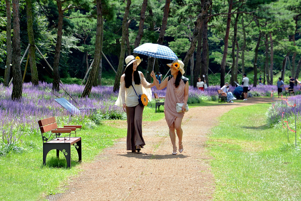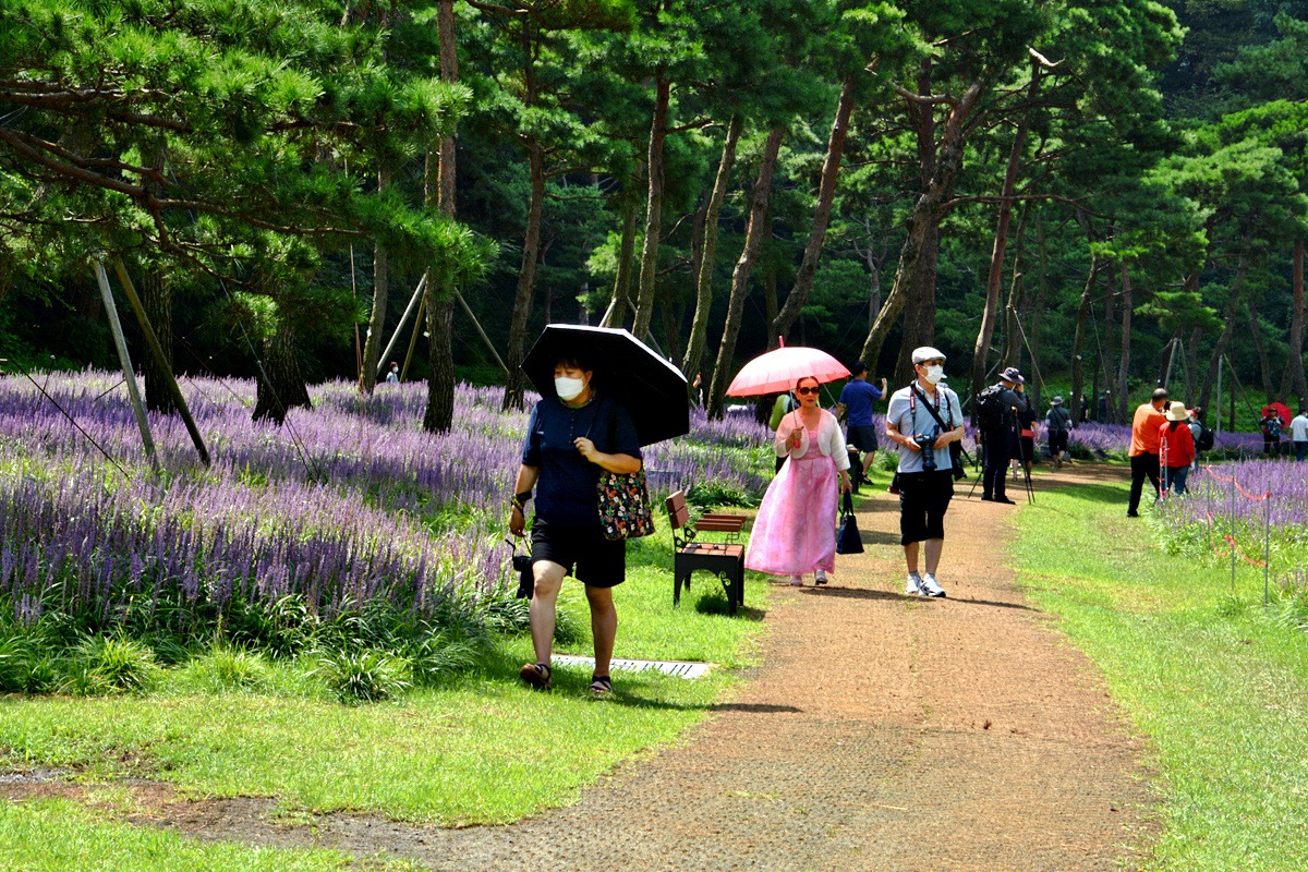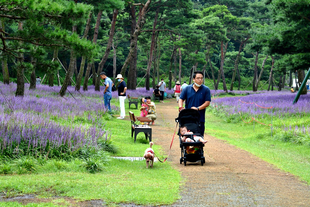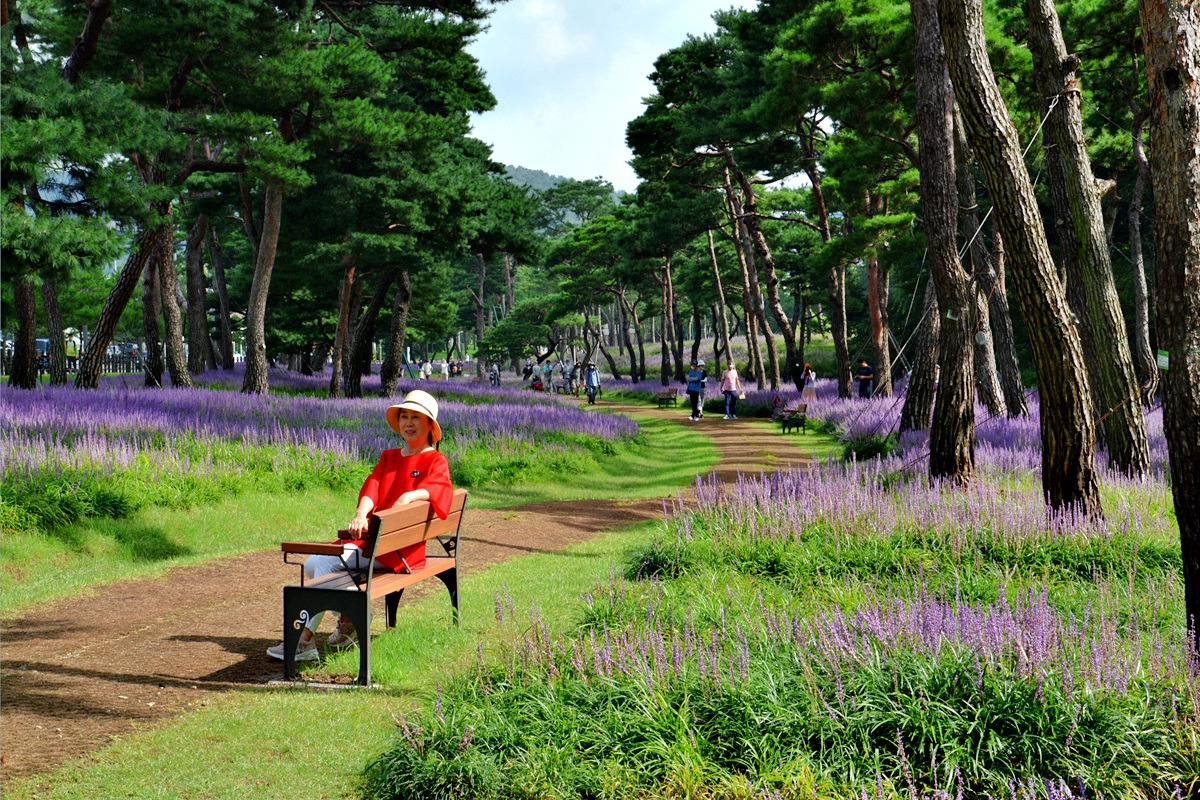 5km에 달하는 노송지대 산책로를 따라 걸으며 소나무에서 나오는 피톤치드와 맥문동의 보랏빛 향기,