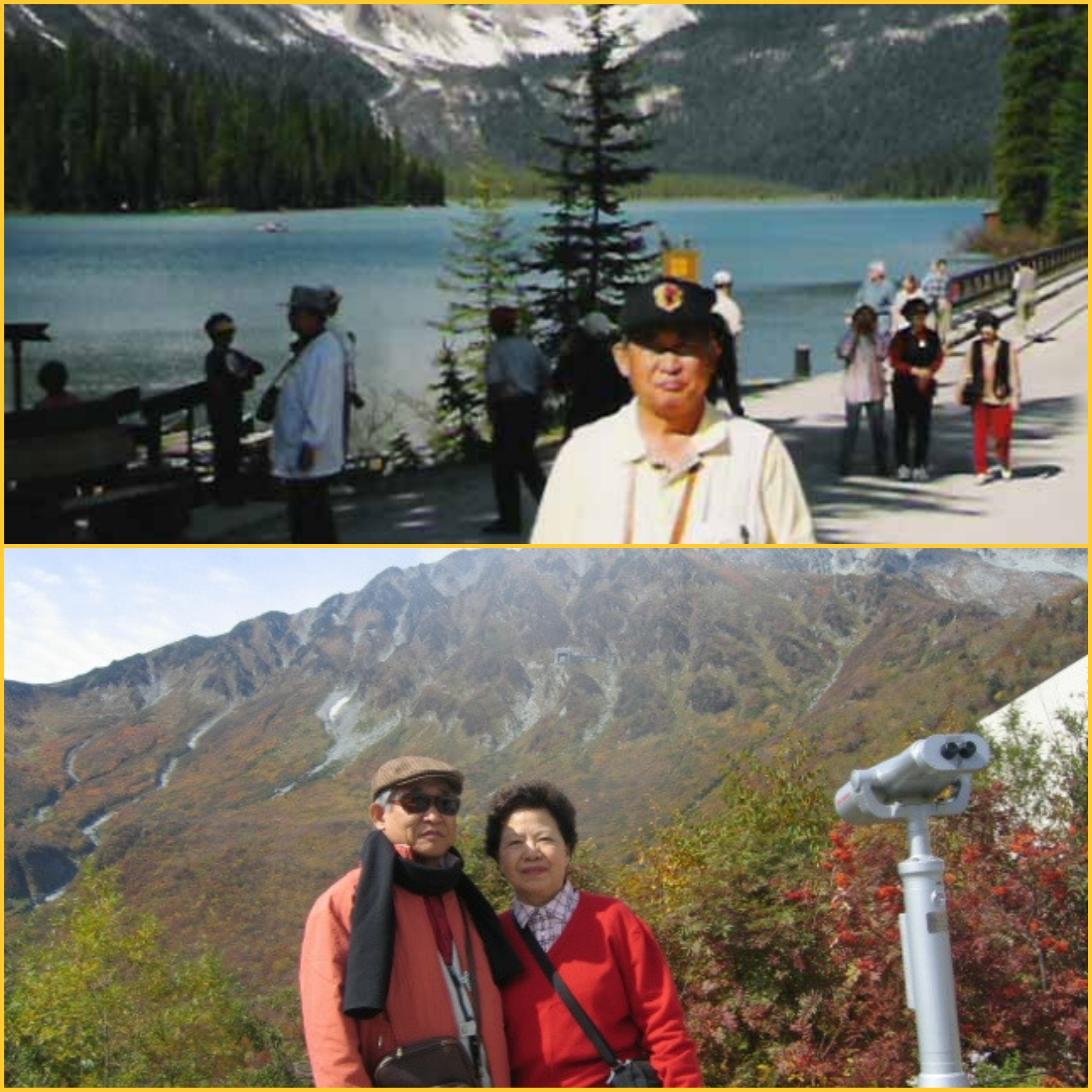 제 캐나다 여행사진 1장, 아내와의 일본 도야마지방 여행사진(사진 下) 1장,