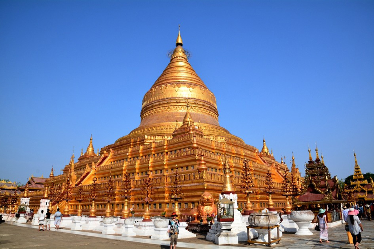 쉐지곤은 황금색의 웅장한 모습의 파고다로 바간의 많은 유적들 중 제1호로 지정되었다고 한다.