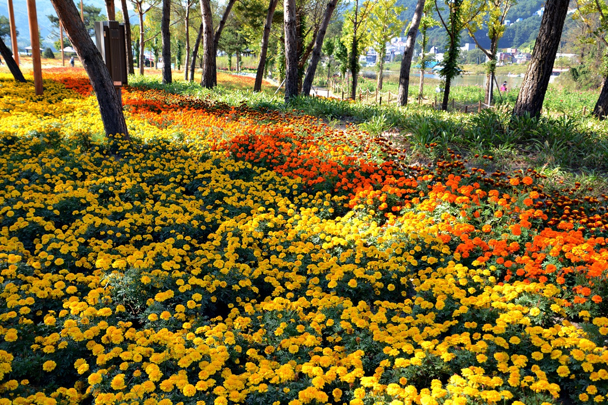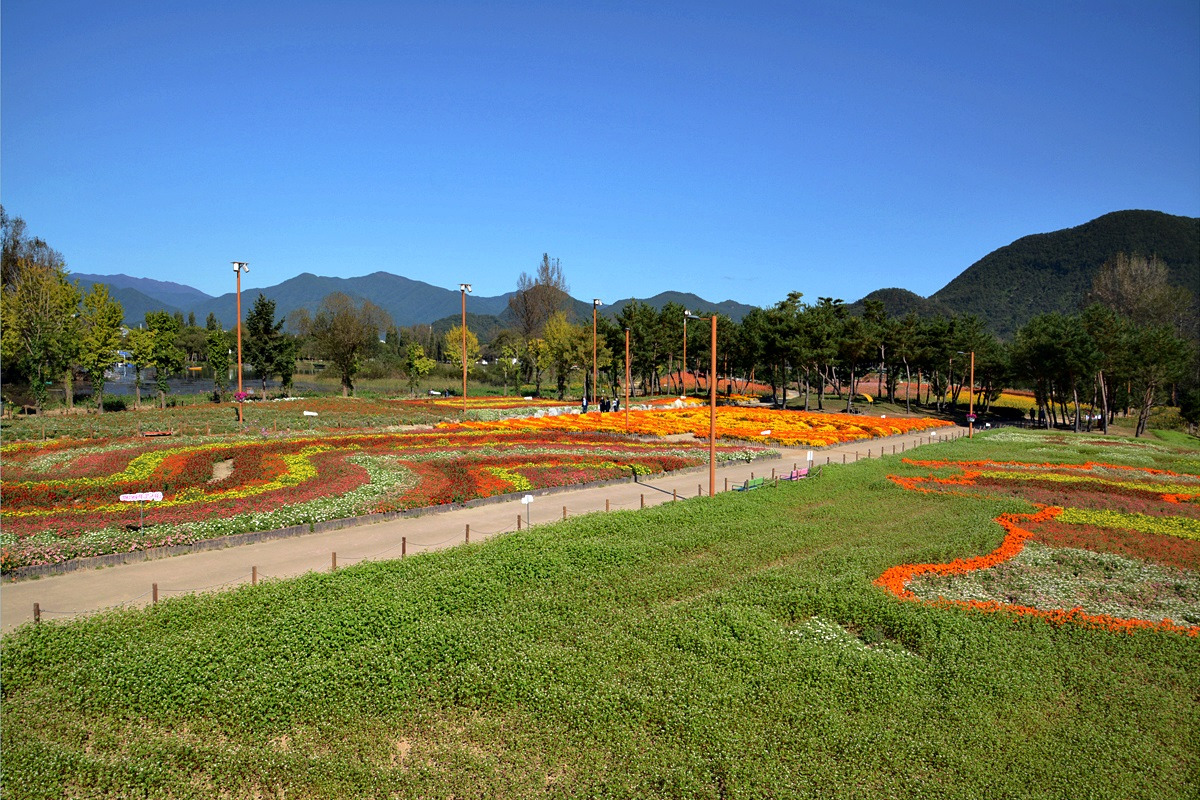 강가엔 수변도로 따라 해바라기 광장, 들꽃 광장, 코스모스등 수많은 꽃과 나무로 이루어진 자연휴양지이다.
