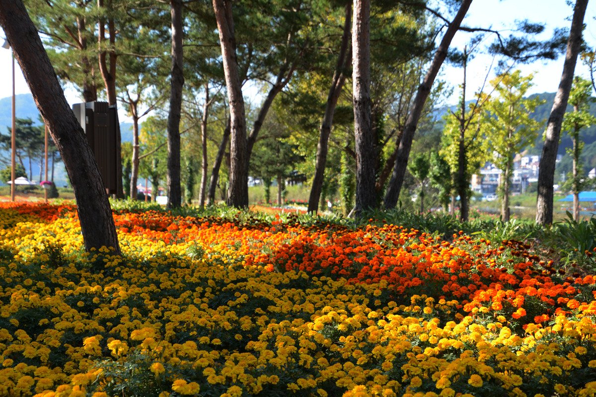 (아래 3번 설명사진 참조)" 주변엔 팬지, 데이지, 코스모스 외 특히 메리골드가 장관을 이루고 있다.(22년 10월 14일 촬영)