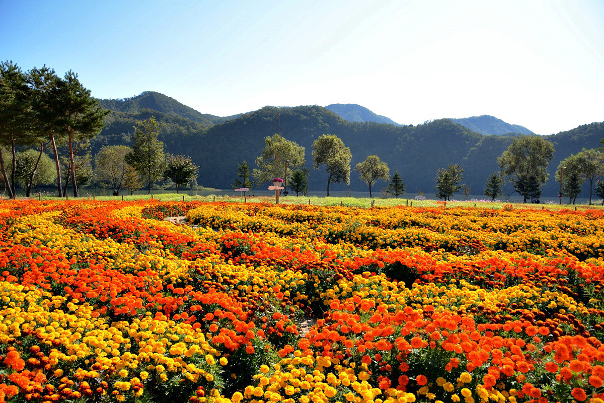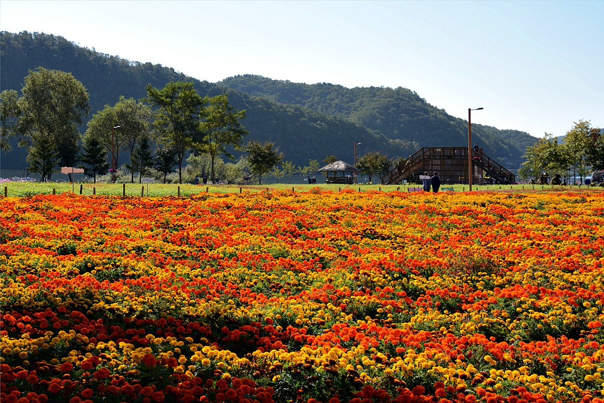 자라섬은 아직 인근의 남이섬만큼 유명세를 타고 있지는 못하지만 4km에 이르는 해바라기, 코스모스, 맨드라미, 백일홍, 구절초등