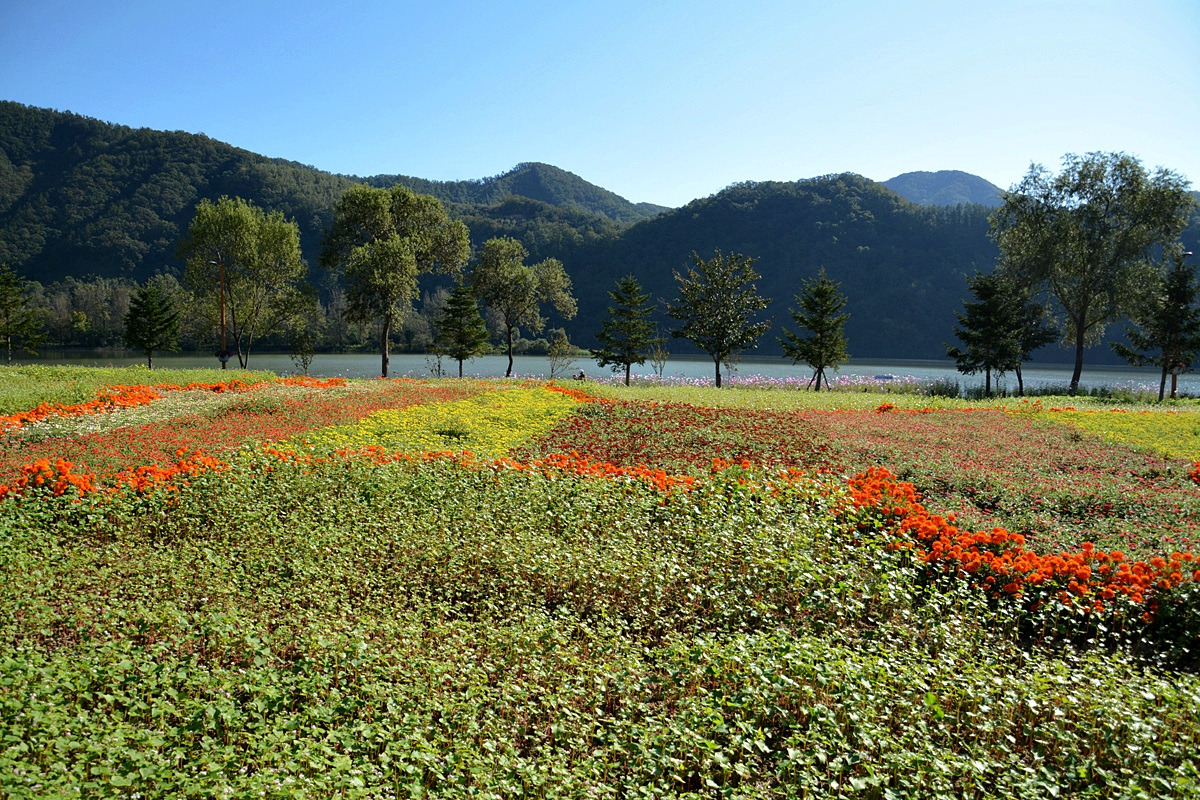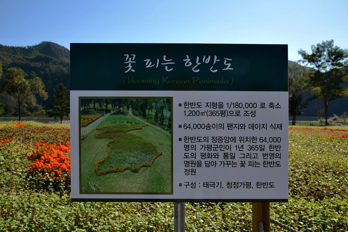 1시간여 몽환적인 풍경을 연출했던 물안개가 사라지더니 온갖 꽃들의 향연이 펼쳐지고 있다. 특히 "꽃 피는 한반도 정원