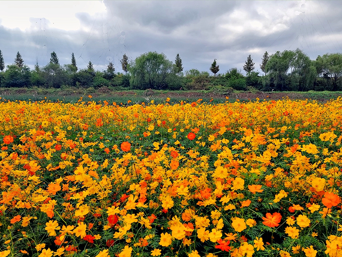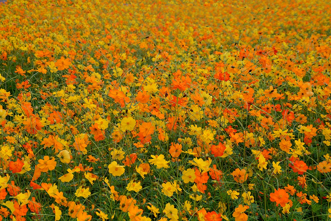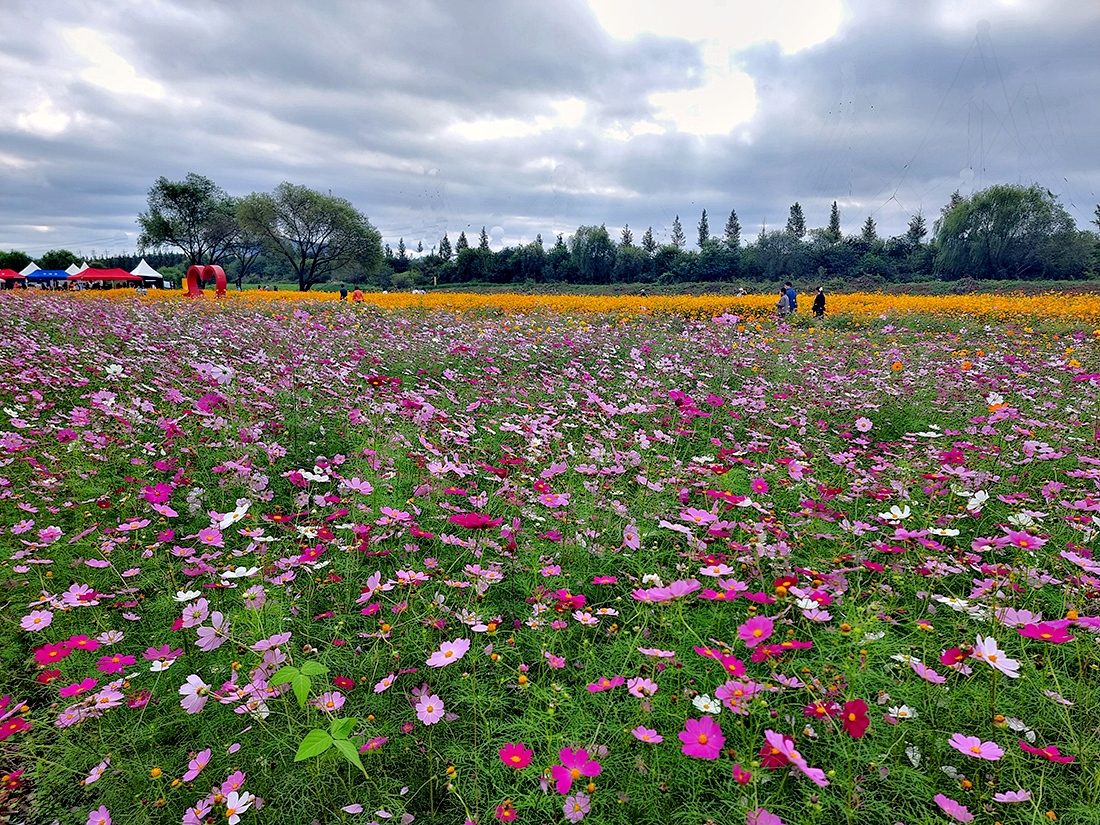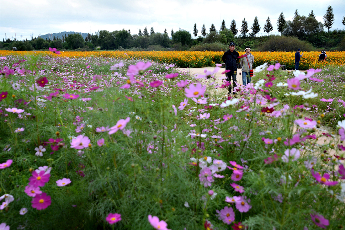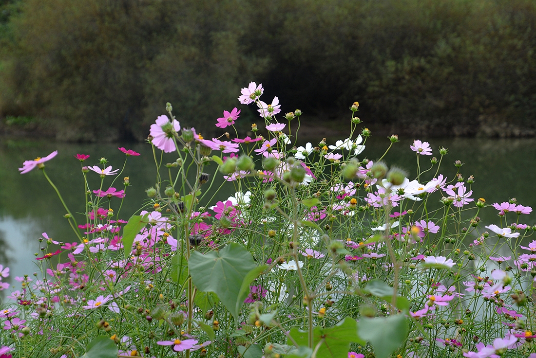 한쪽은 일반 코스모스, 한쪽은 황화코스모스가 절정을 이루며 그야 말로 노랫말에 나오는