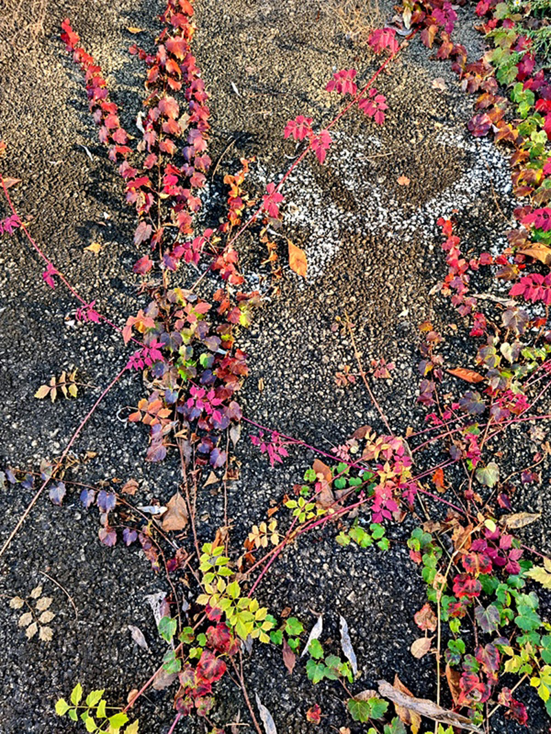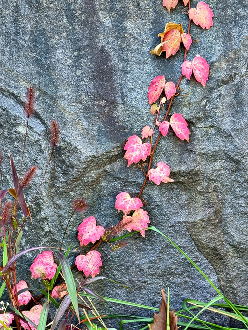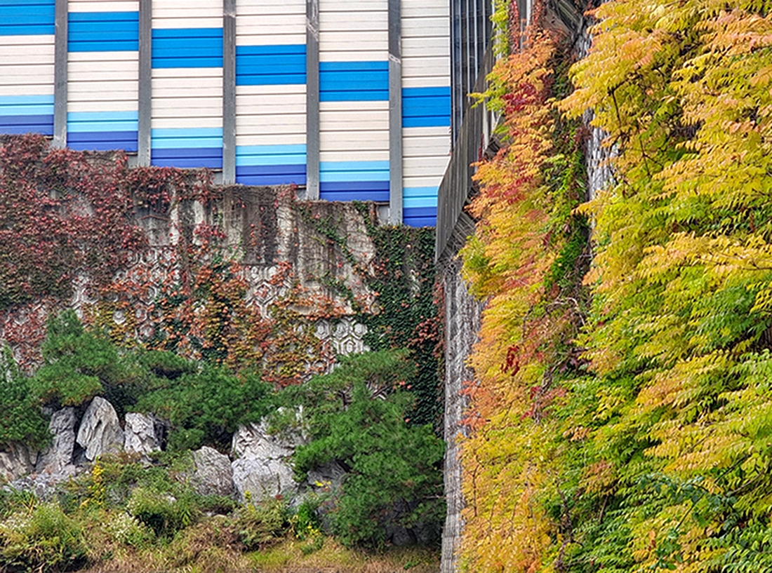 있기 때문이다. 특히 벽면(壁面)에 붙어 자라는 모양새를 보면 재미있다. 대체로 식물의 뿌리는 중력과 같은 방향인 땅속으로 자라고