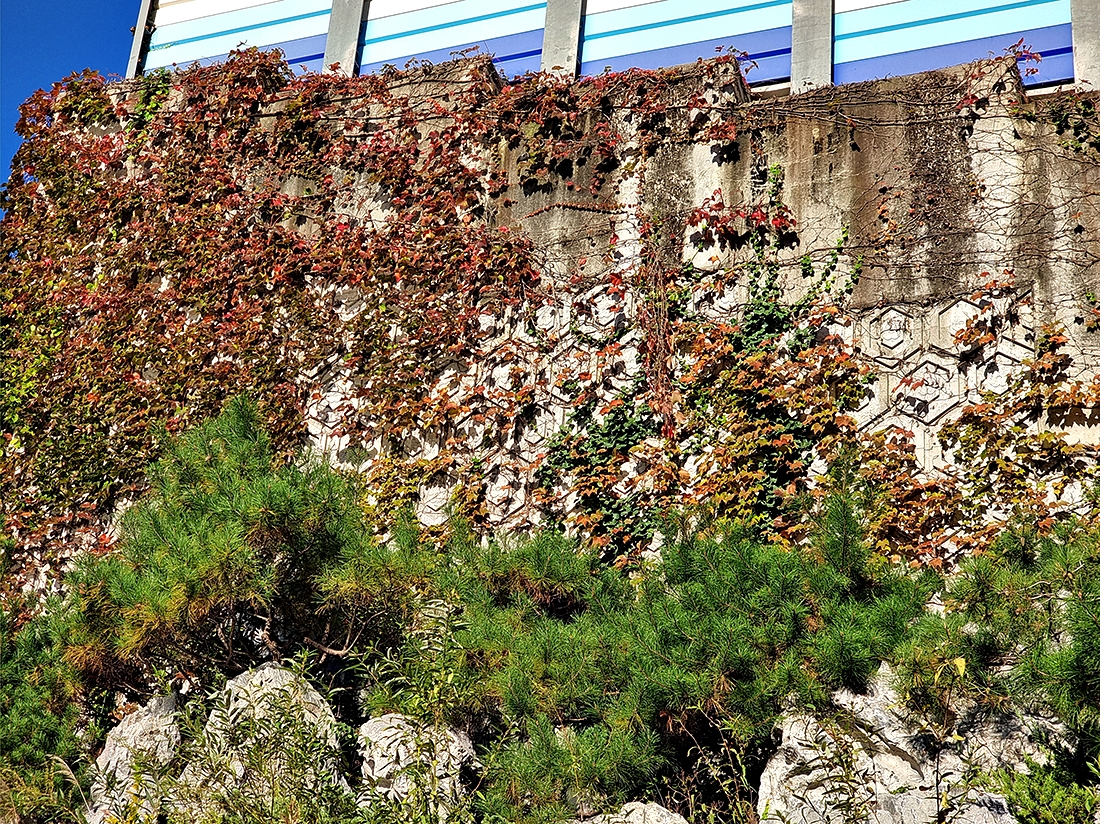 송파 둘레길 장지동 구간 자동차 전용도로 소음벽에서 폰으로 담았다. (25년 10월 27일 촬영)