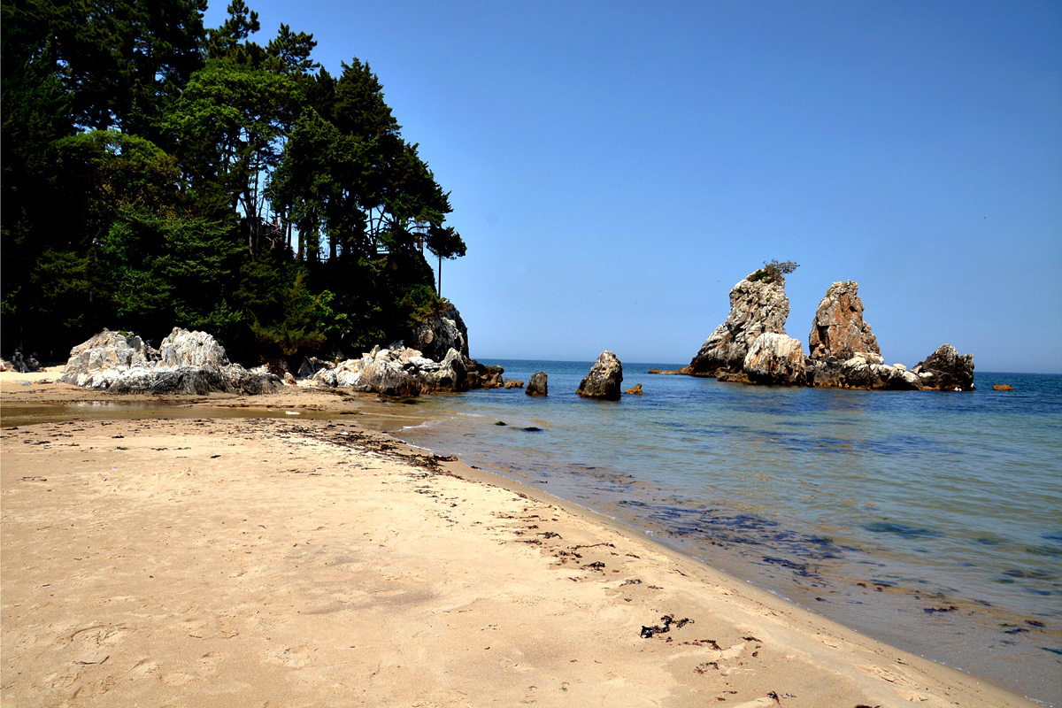 해안절벽과 동굴, 칼바위, 촛대바위 등의 크고 작은 바위섬이 장관을 이루고 있으며,