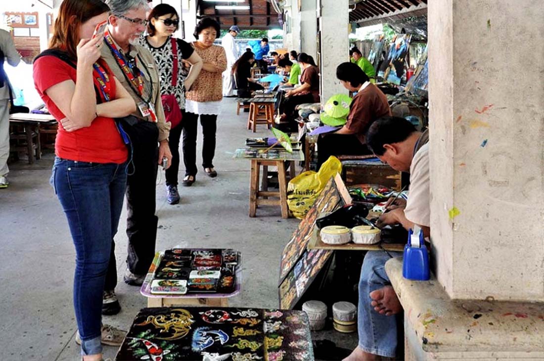 산캄펭 거리에 위치하고 있는 간캄펭 민예마을은 치앙마이에 있는 태국 최대의 수공예 단지일 뿐만 아니라.