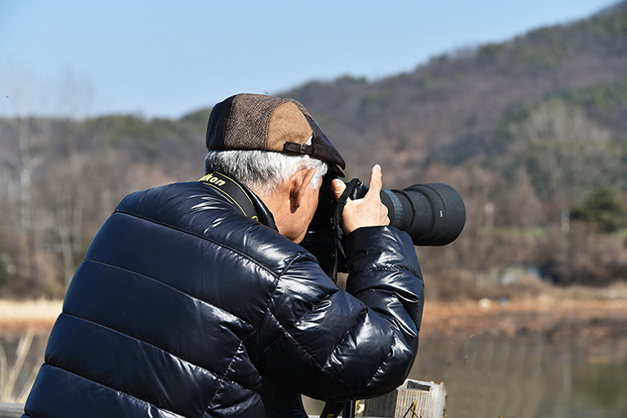 오늘도 수도권 주변의 철새 월동지 중 한 곳인 한강의 팔당대교 아래, 한강 수변을 찾았다