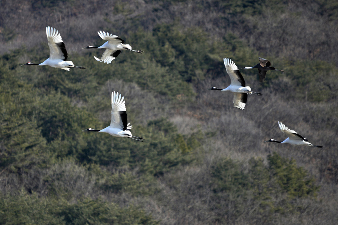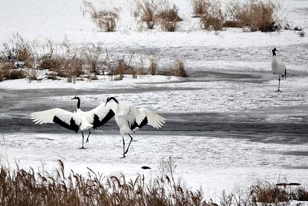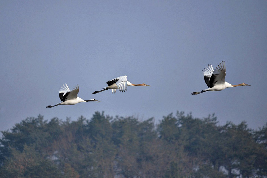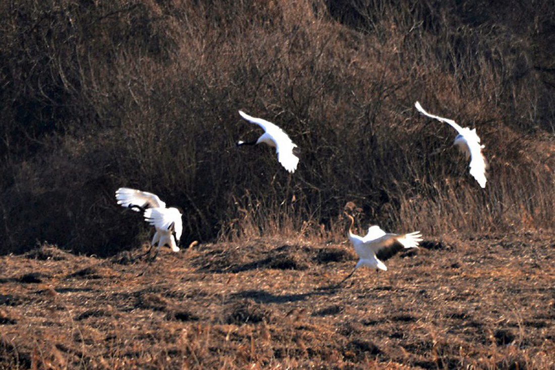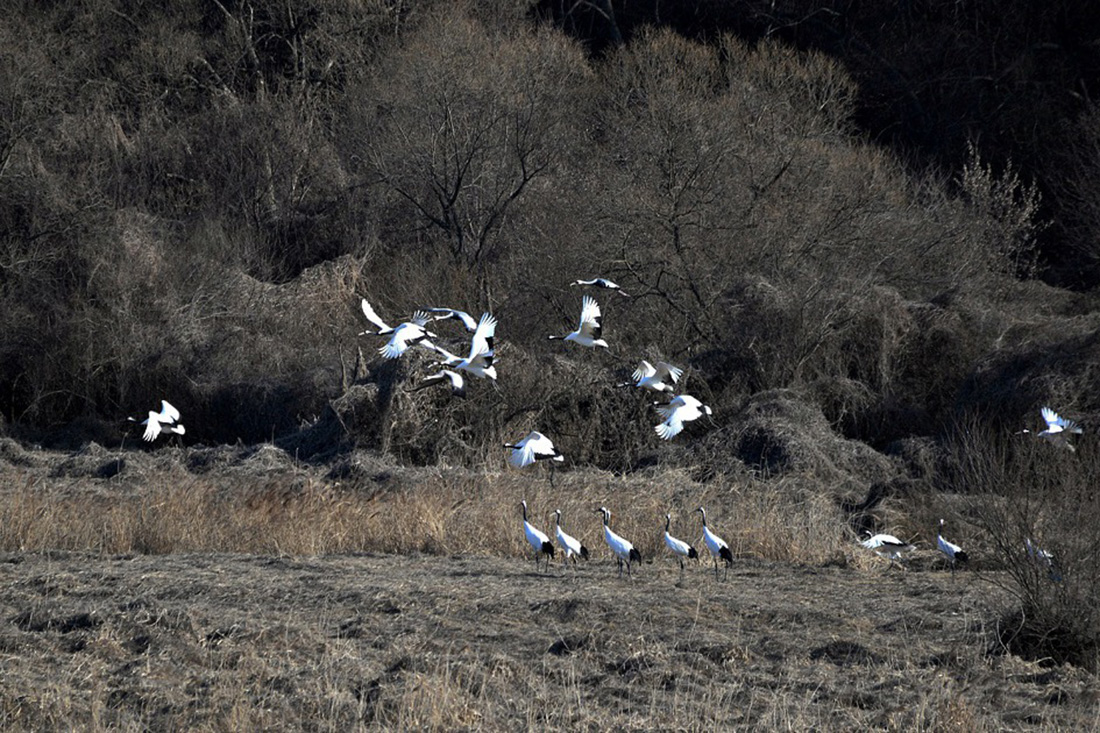 철새 두루미들이 시베리아, 몽골, 일본 북해도등으로부터 날아와 월동을 하고 있다.
