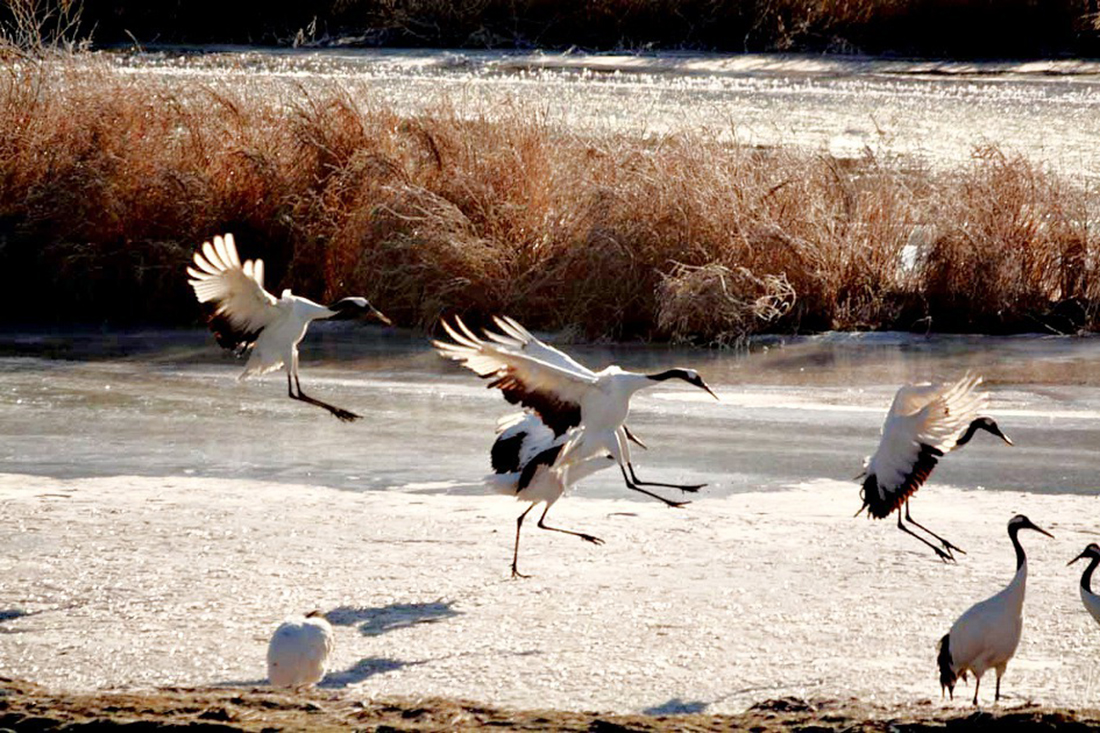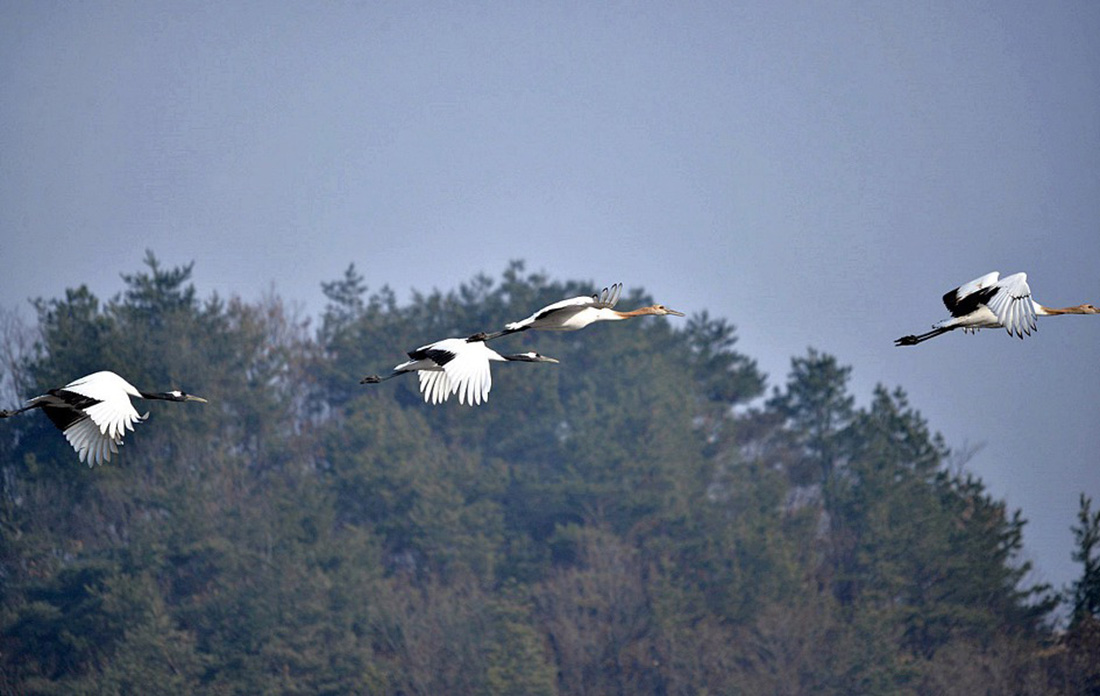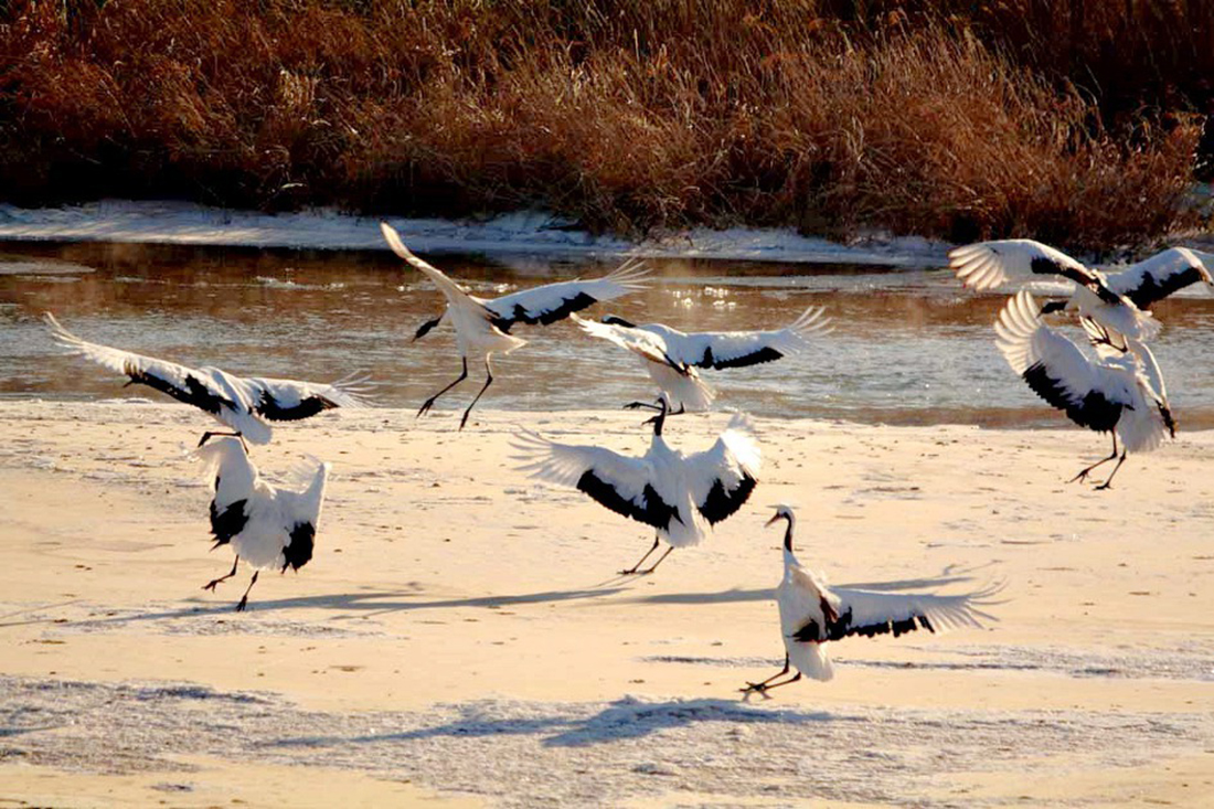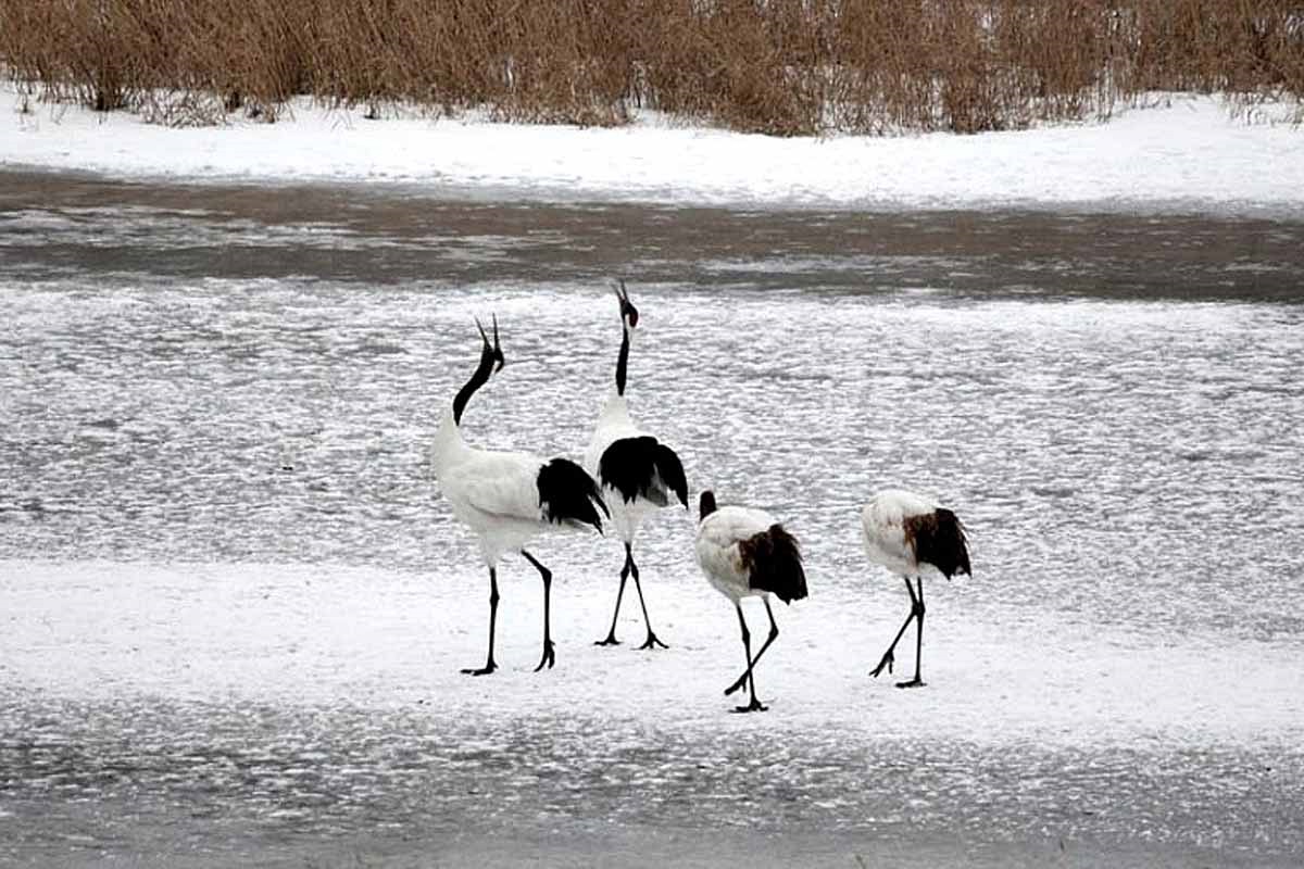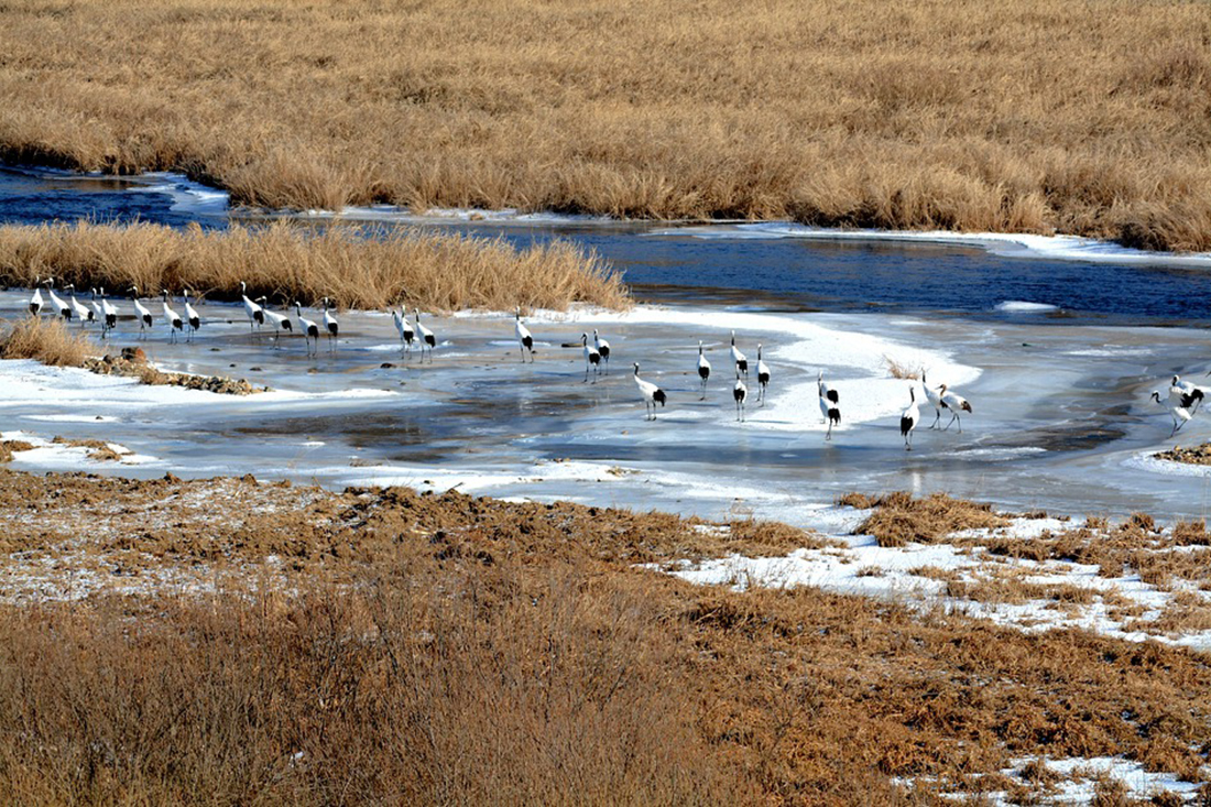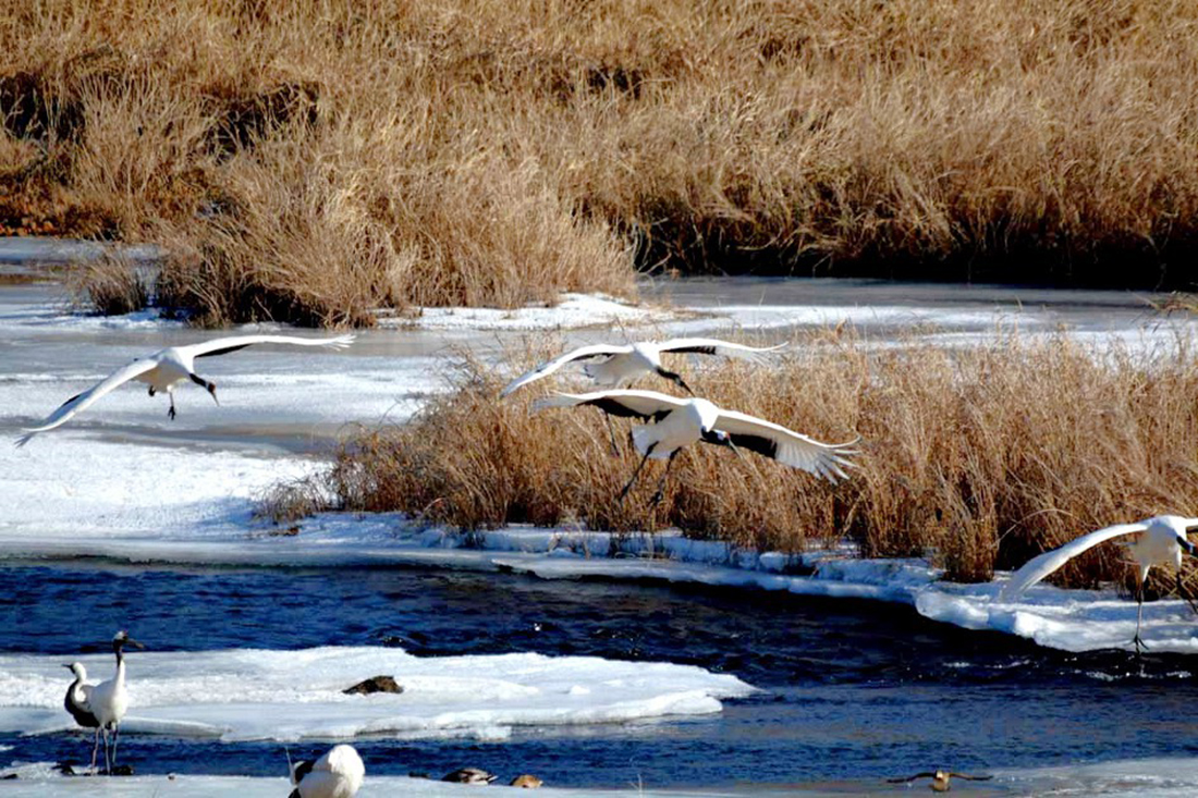 철새 두루미들이 시베리아, 몽골, 일본 북해도등으로부터 날아와 월동을 하고 있다.