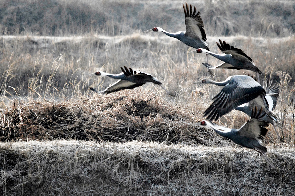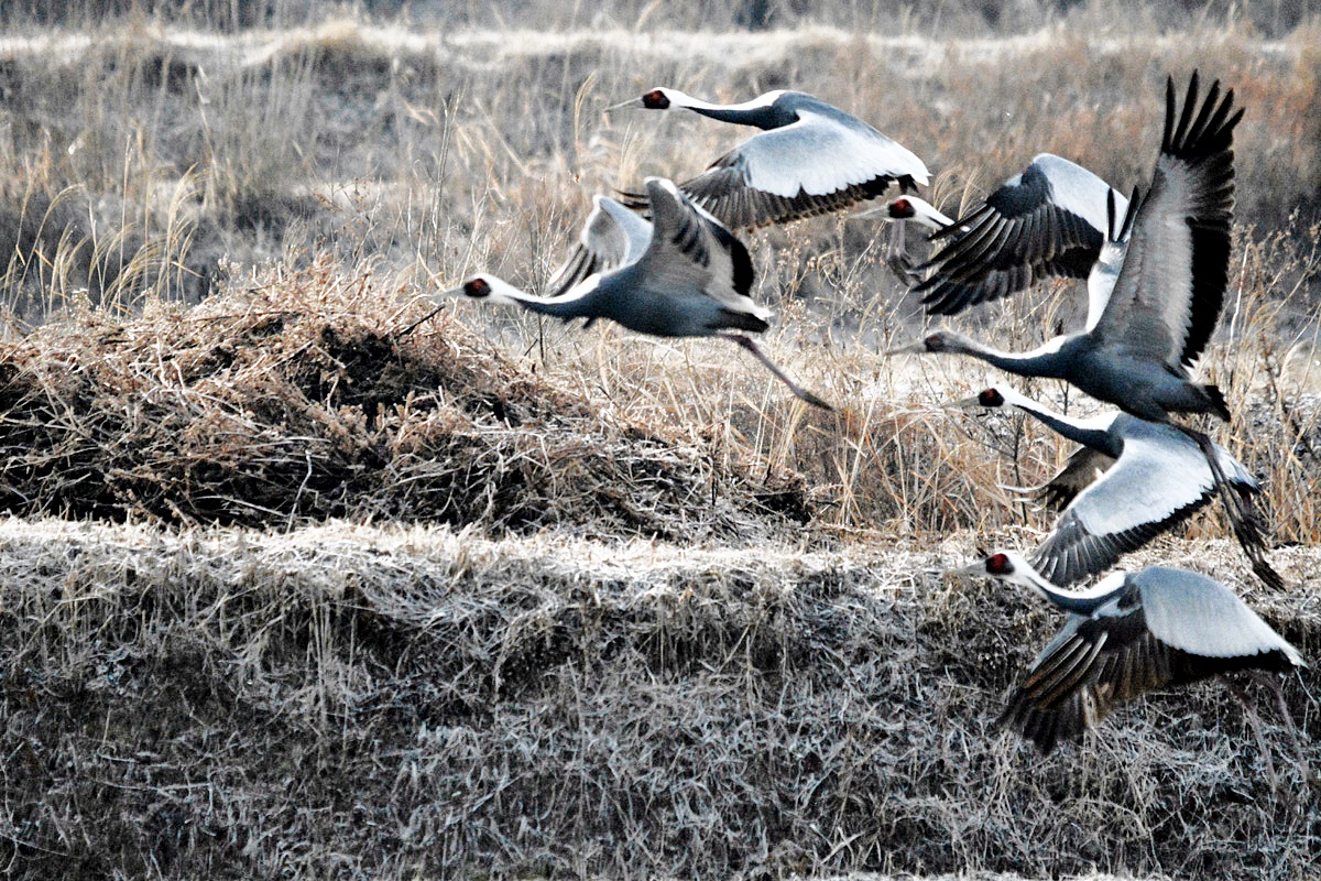 철새 두루미들이 시베리아, 몽골, 일본 북해도등으로부터 날아와 월동을 하고 있습니다. 드넓은 철원 평야에서