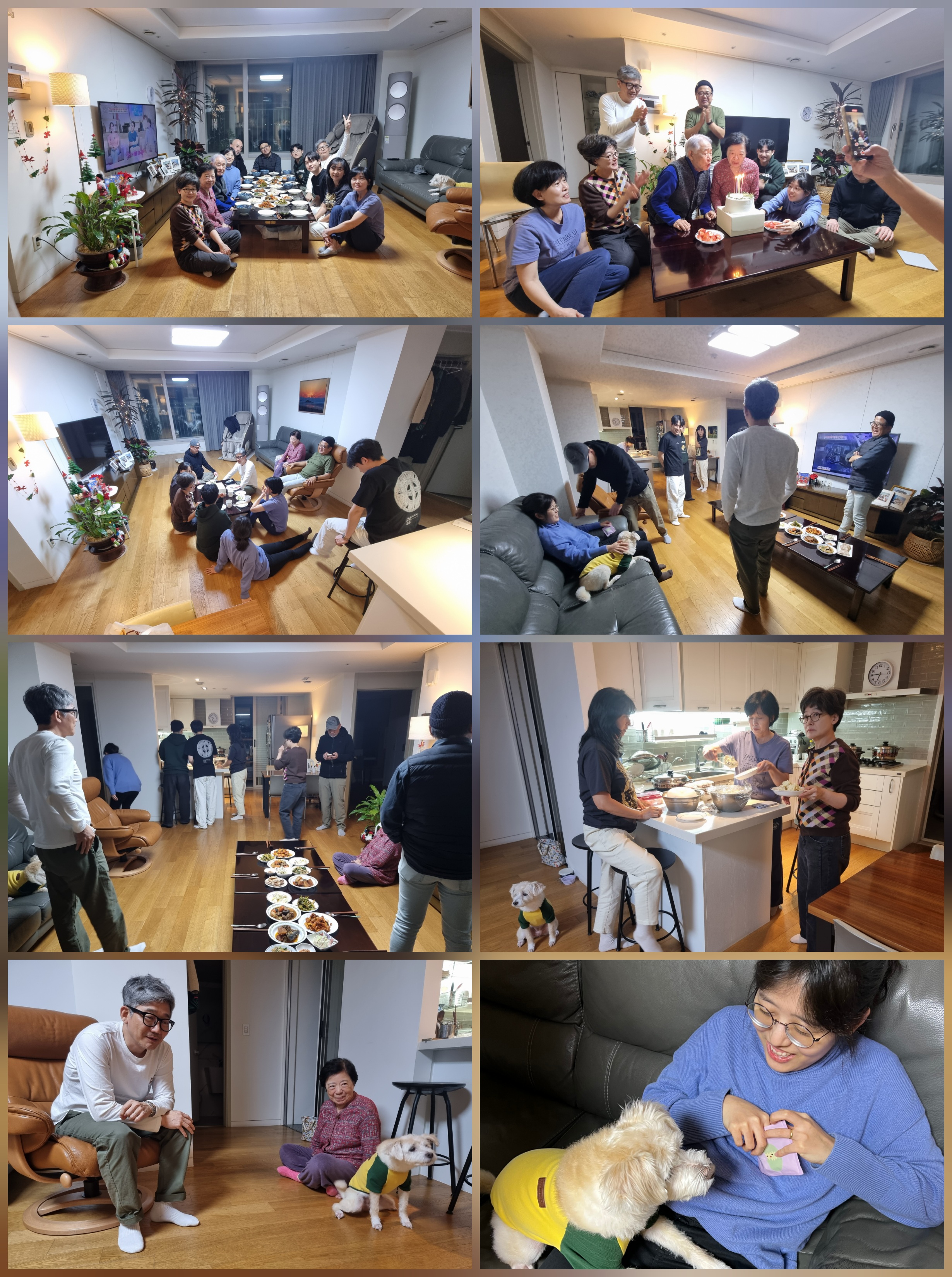 평일임에도 불구하고 큰 아들(자영업), 대학교수인 작은 아들(하루 시간을 낼수 있다고 해서), 두 딸, 손주 여섯마리 중