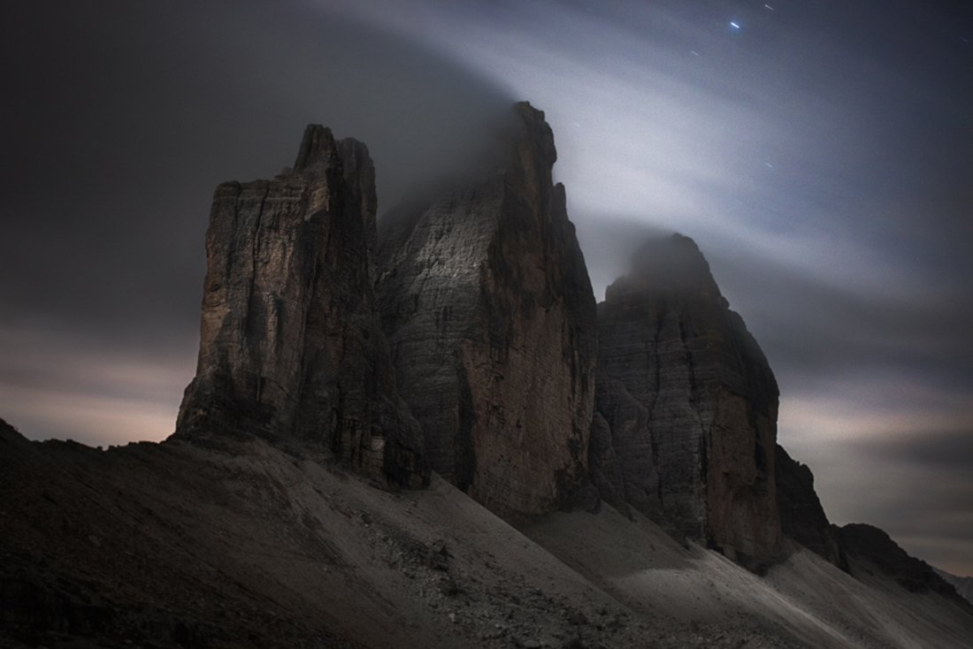 ▲ 이 사진은 세계적으로 유명한 Tre Cime di Lavaredo (Drei Zinnen), Dolomites, 인데, 2012년 10월 4일 오후 11시 20분에 촬여함.