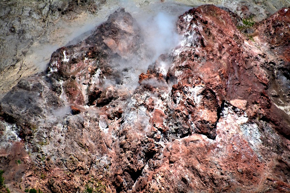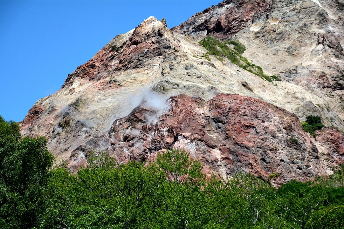 해발 402m의 소화신산은 기생화산으로 지금도 개스를 분출하며 정상부의 지표 온도는 300℃를 넘는다고 한다.