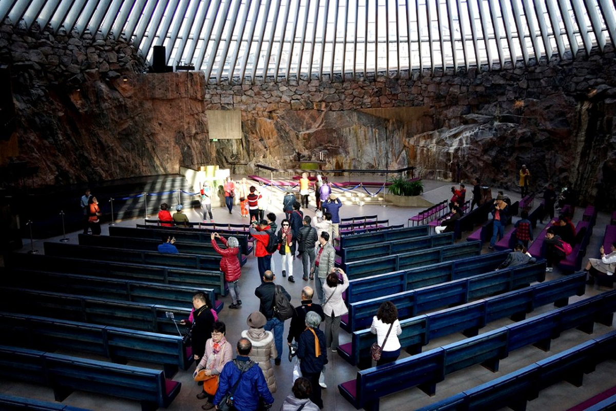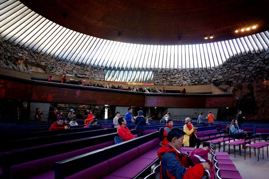 템페리아우키온교회라는 이름의 이 암석교회는 암반을 파서 동선(銅線)으로 만든 둥근 지붕을 얹은 재미있는 건물의