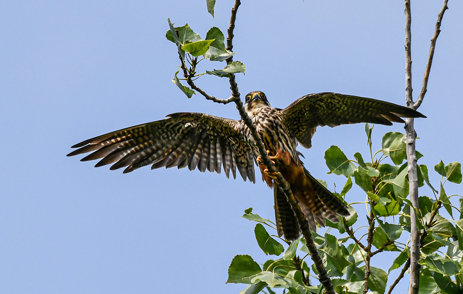 작은 조류와 곤충류를 주로 섭식하며 우리나라에는 5월 ~ 9월에 지나가는 나그네새이다.