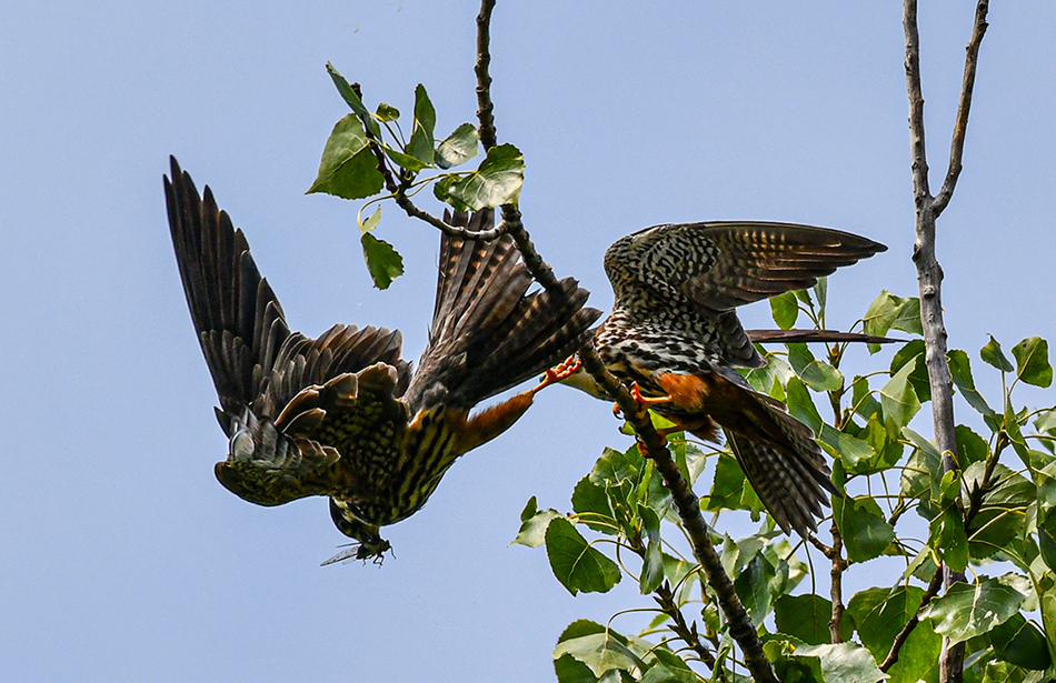 어미새가 사냥해온 먹이를 공중에서 암수가 서로 건네주는 장면을 기대했는데 공중에서 먹이를 전달하는