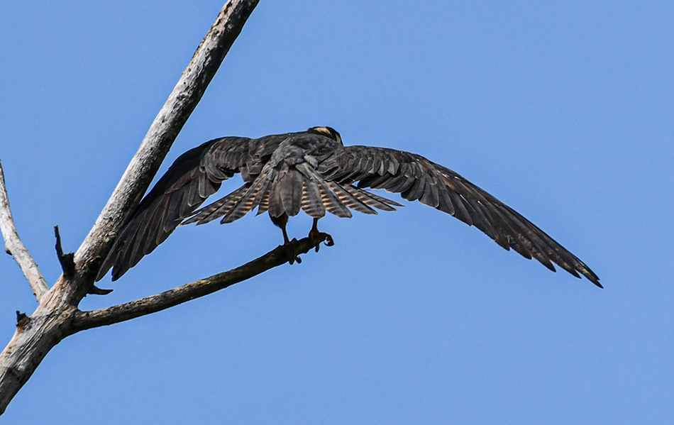 서울 외각의 한 숲에 새홀리기(Eurasian hobby)가 육추중으로 곧 이소(離巢)할 것 같다는 소문을 듣고