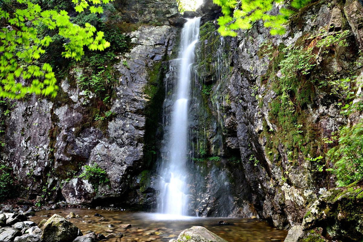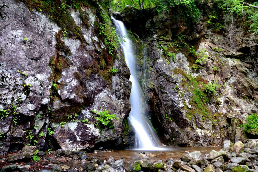 복계산 중턱 높이 10m 정도의 깎아지른 기암절벽을 내려쏟는 폭포이다.