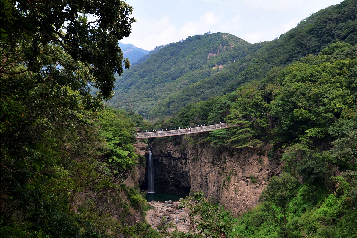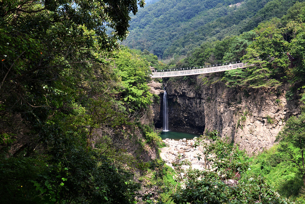 주변의 주상전리 절벽과 어울어진 싱그러운 푸르름이 변함 없이 아름답다.