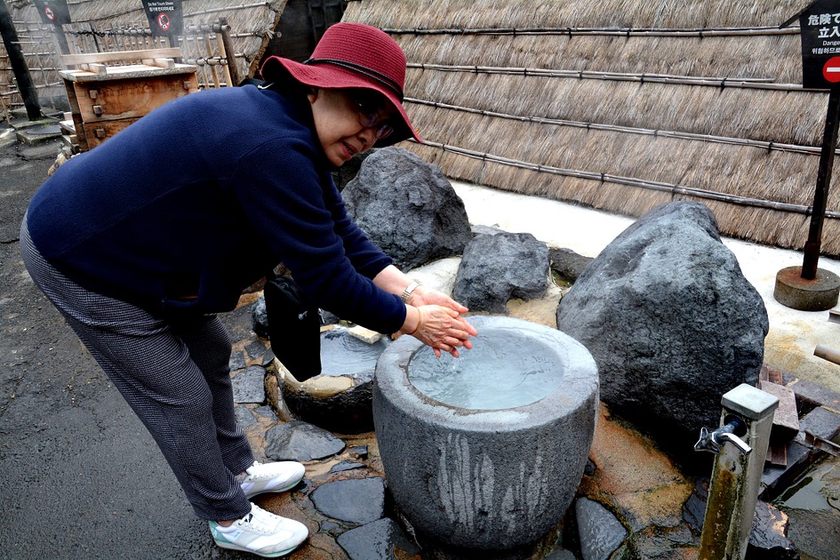 누구나 온천물에 손을 씻을 수 있도록 만들어진 장소가 있었는데 오래동안 담그기엔 물이 너무 뜨겁고 바로 옆엔