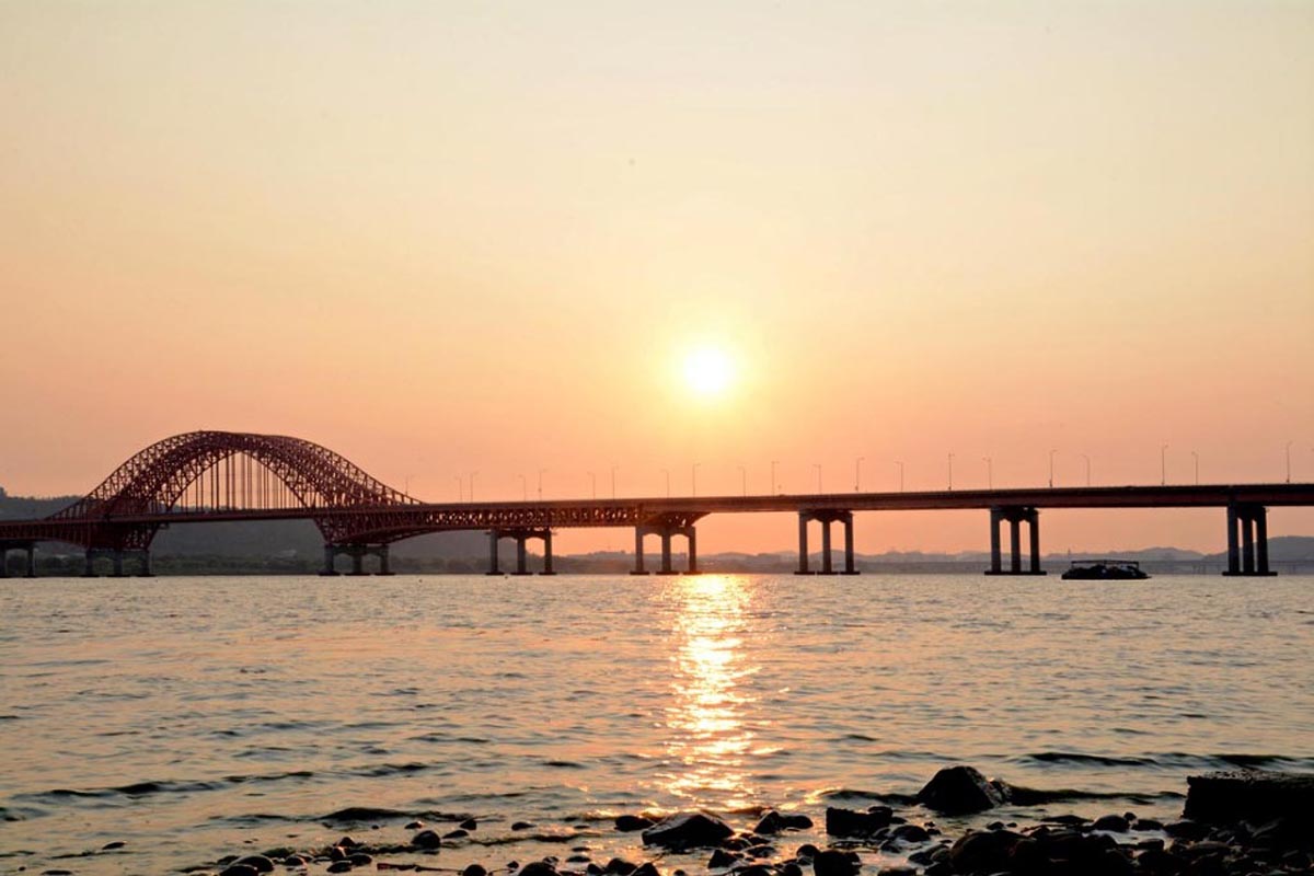 강서습지공원에서 바라본 방화대교의 일몰과 야경입니다