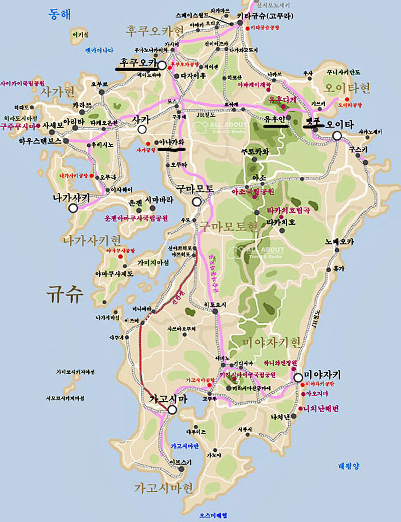 여행코스 : 일본 규슈지방 온천여행 (후쿠오카→야나가와→유후인→벳부→유후인→후쿠오카)