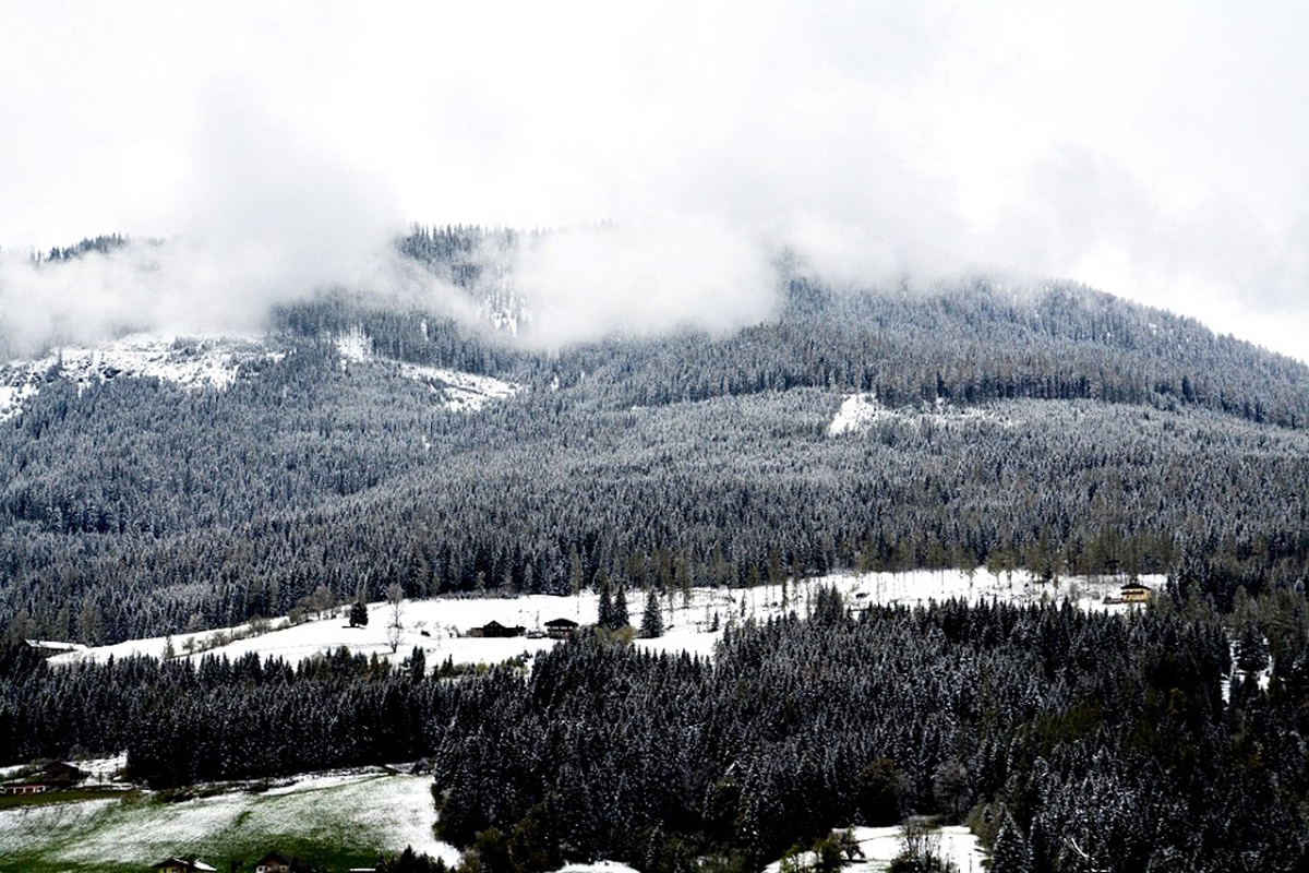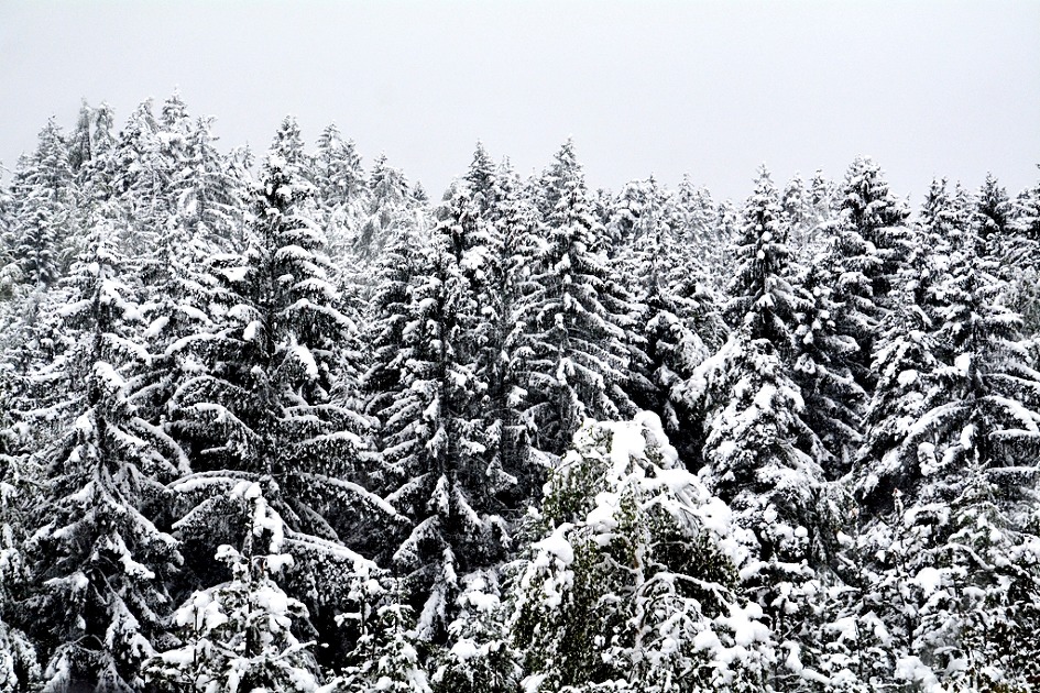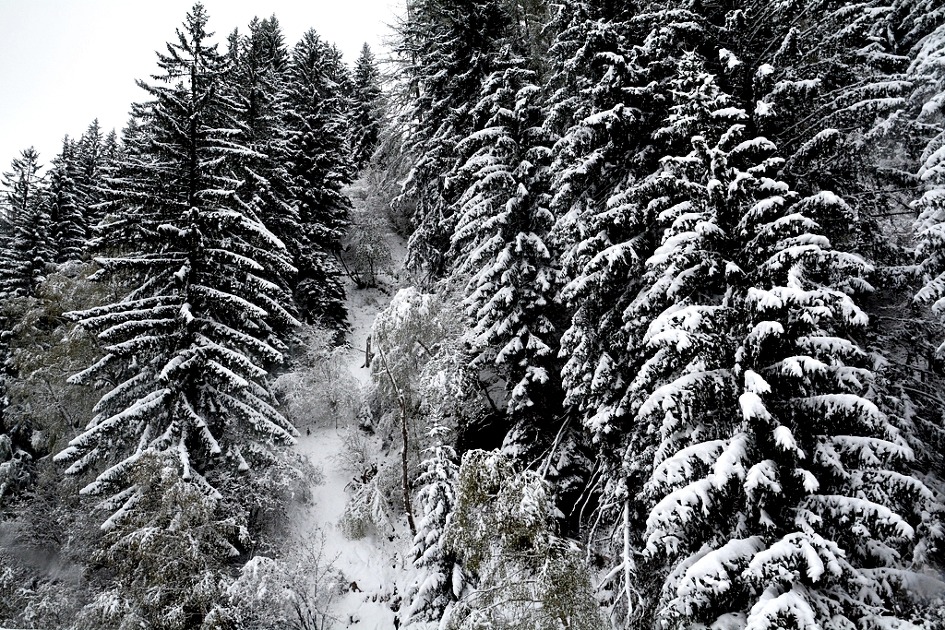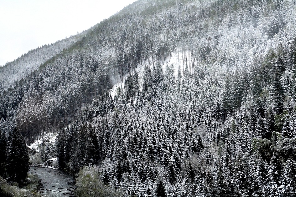 알프스 산줄기가 이어지는 슬로베니아 일대에 폭설이 내려 그 영향인가 침엽수림을 하얗게 덮은 주변 경관이 절경이다