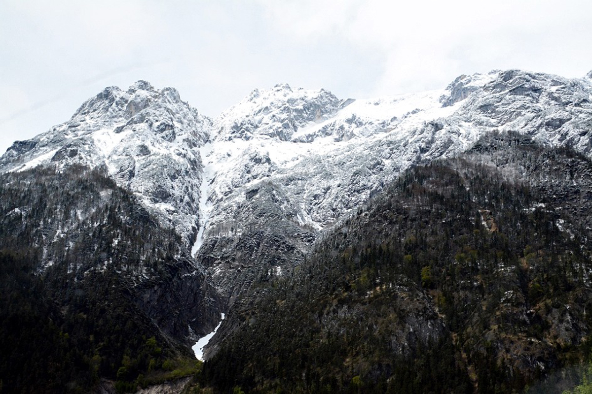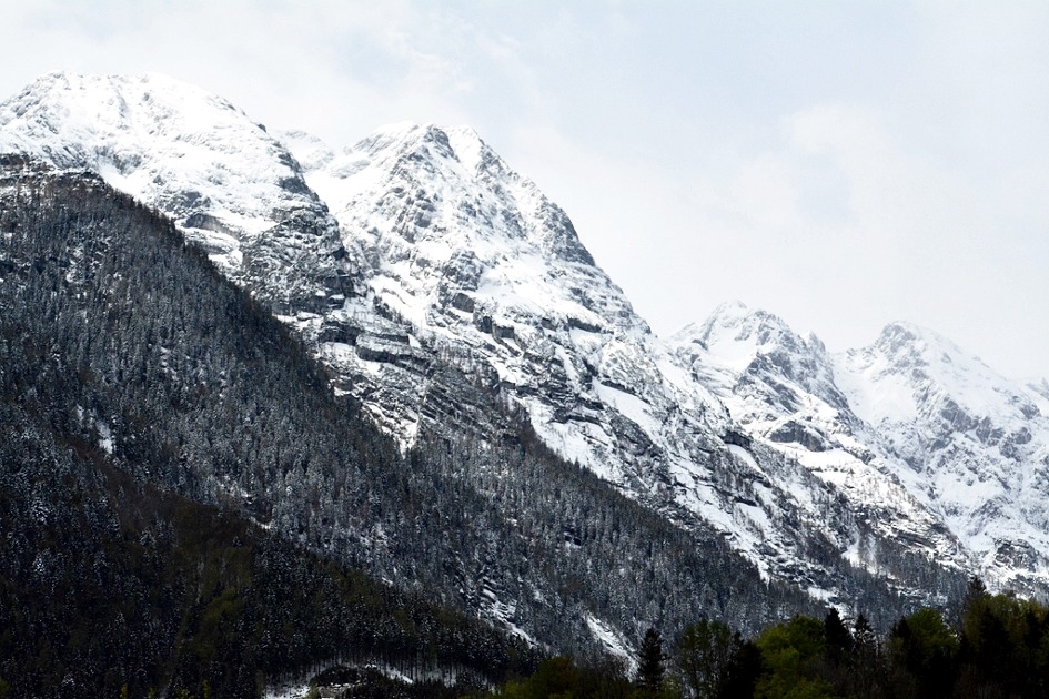 알프스 산줄기가 이어지는 슬로베니아 일대에 폭설이 내려 그 영향인가 침엽수림을 하얗게 덮은 주변 경관이 절경이다