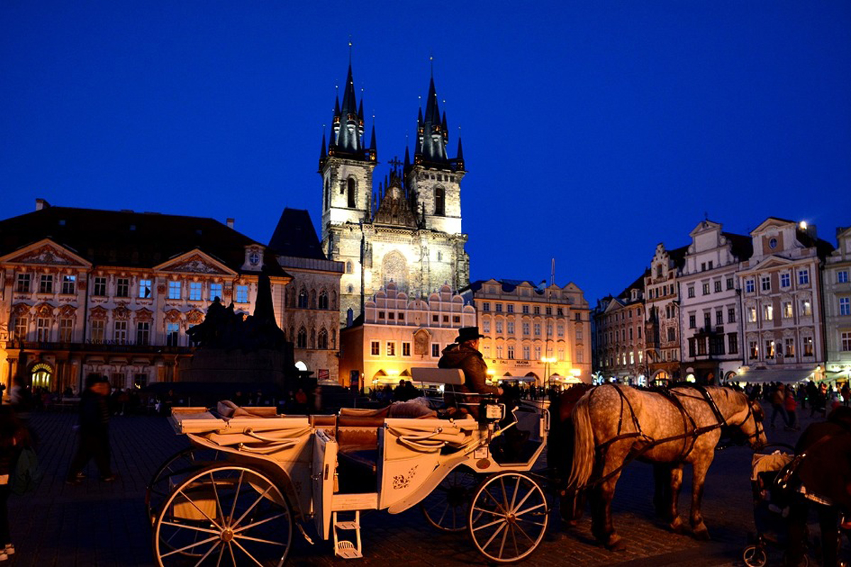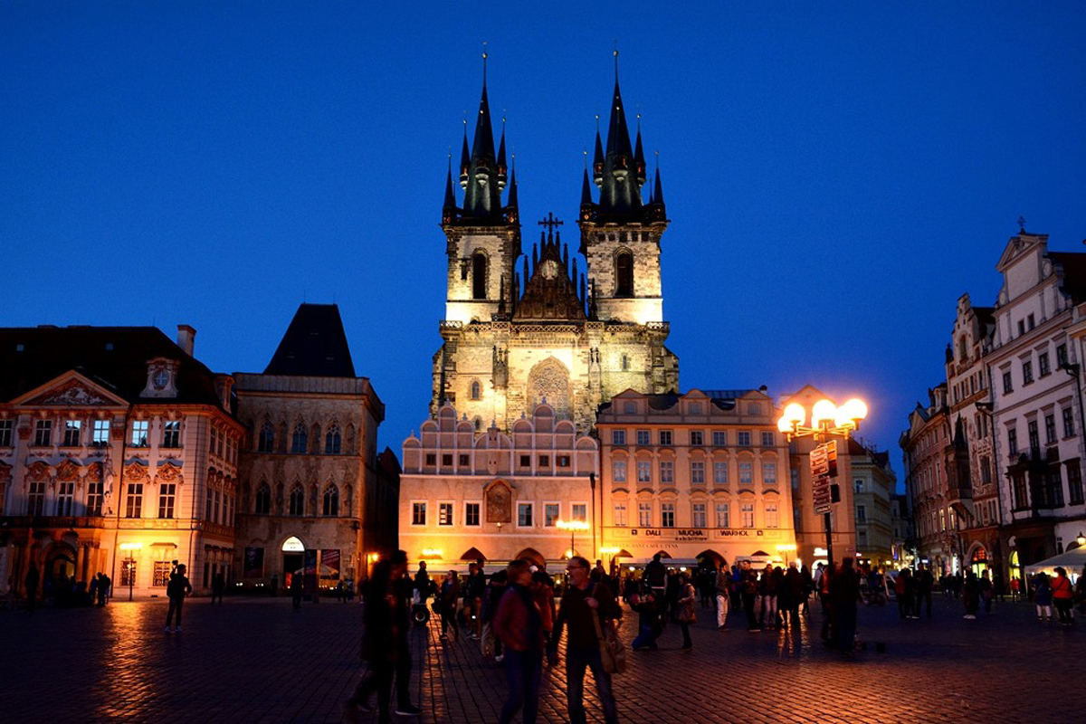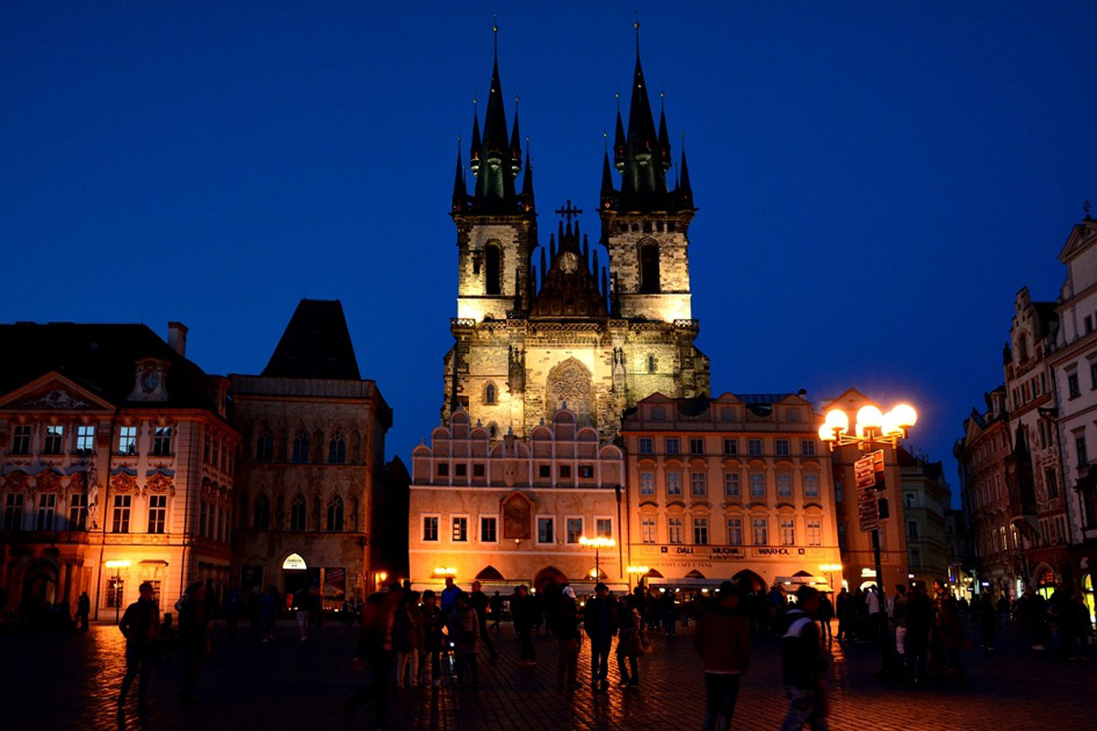 야경은 조명이 가장 아름답다는 구시가지 광장앞 틴교회 주변을 찍기로 하였다