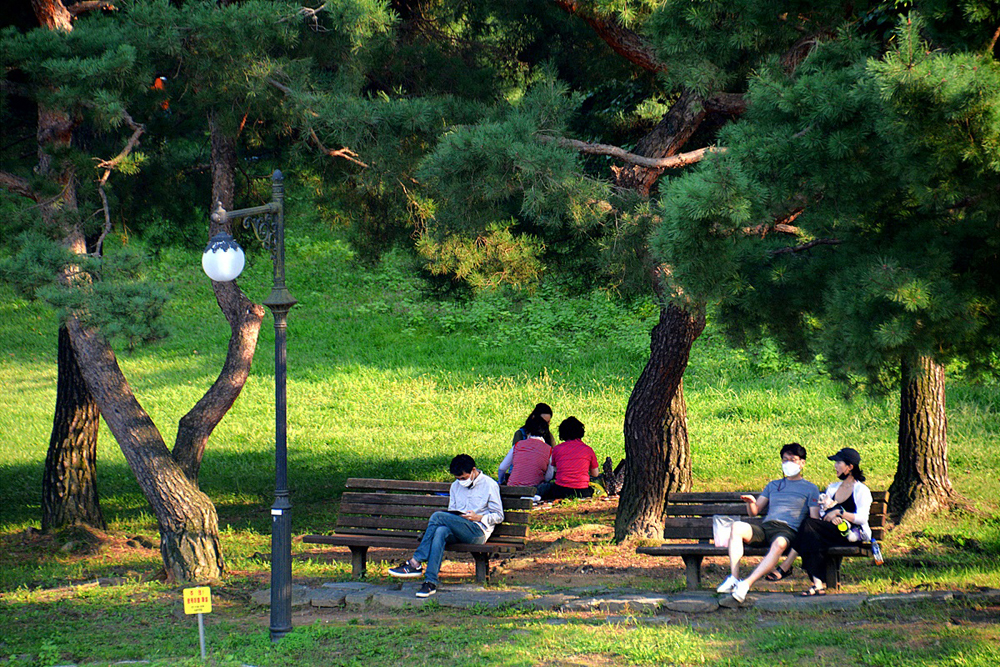 하루 해가 저무는 석양빛 아래 비록 마스크로 중무장을 했지만 잠시나마 쉬어가는 풍경이 온갓 시름을 잊은듯
