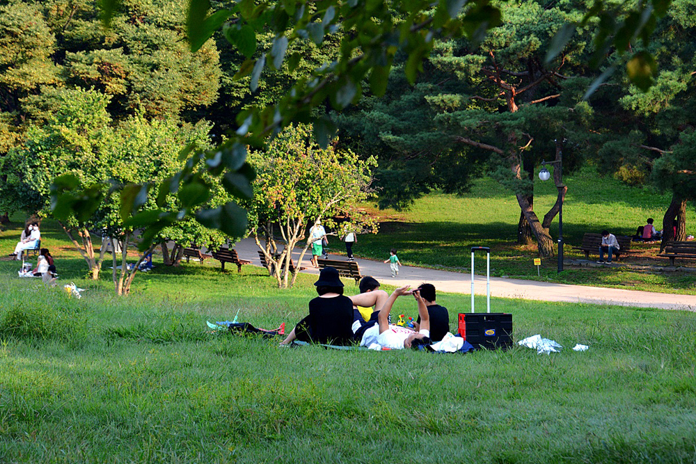 지칠대로 지쳐있는 시민들이 주말을 맞아 가족끼리, 연인끼리, 친구끼리 도심공원을 찾아