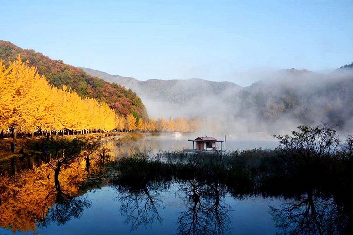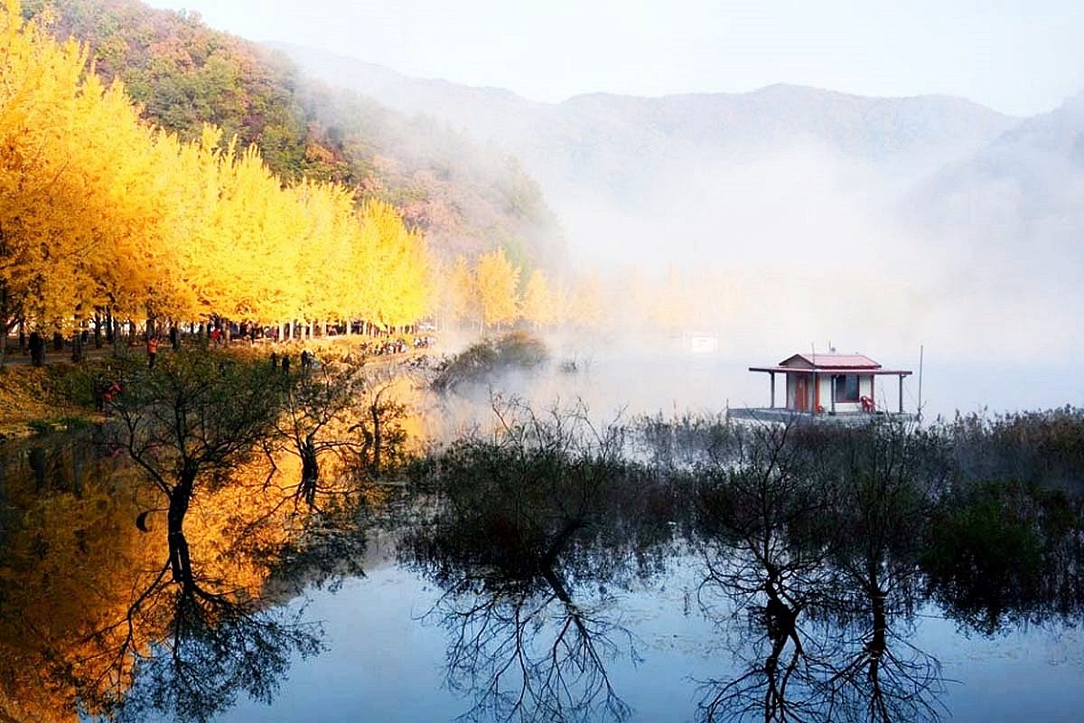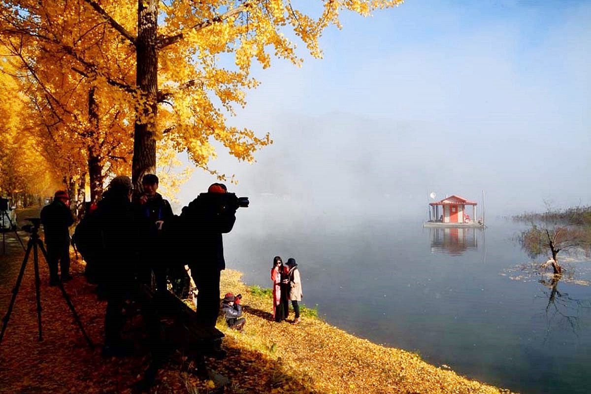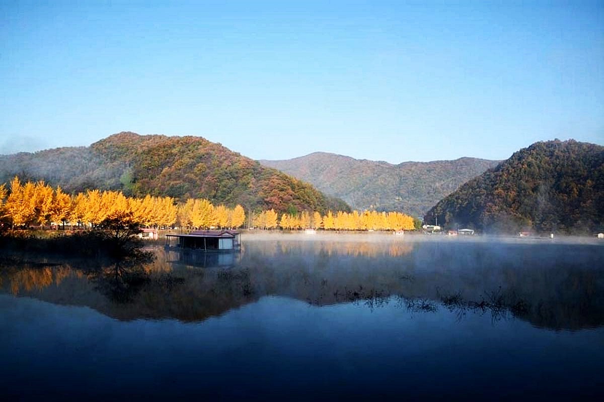 저수지 주변을 둘러싼 은행나무가 노랗게 물드는 이맘 때쯤이면 전국의 사진가들이 모두 몰려든다는