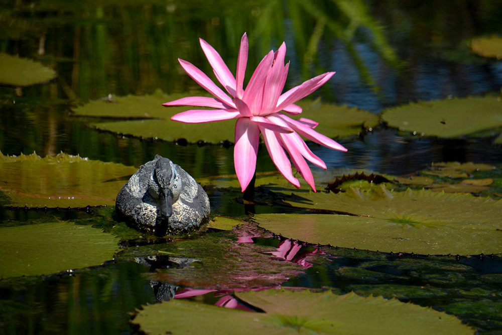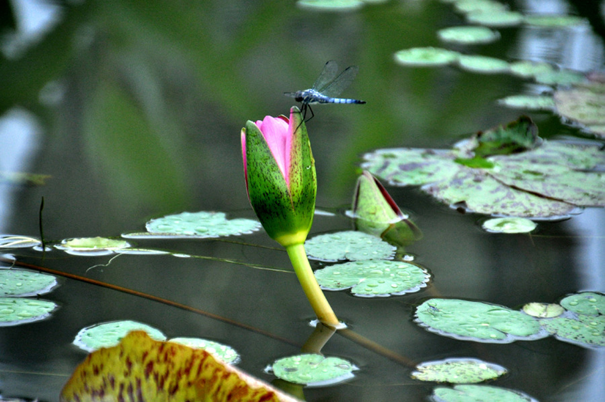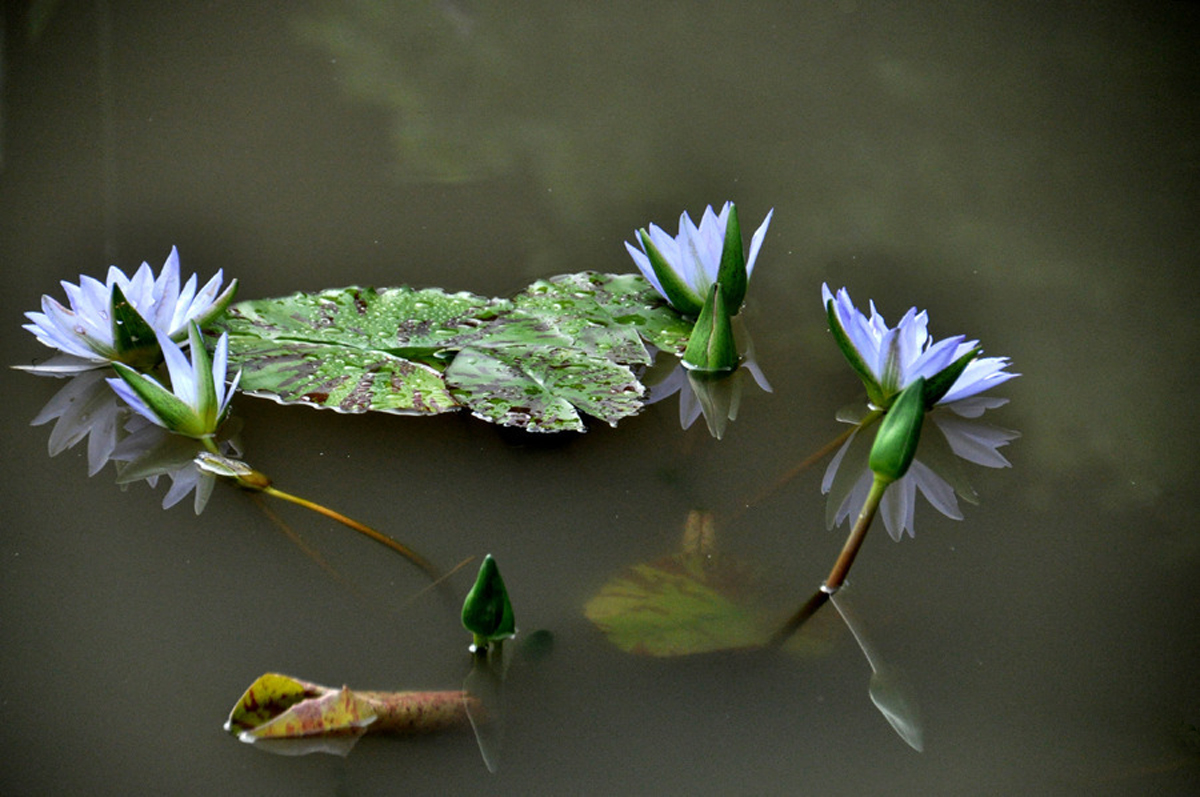 수련이라는 '꿈꾸는 물위 요정'이 절정기를 구가하며 깜칙하고 아름다운 자태로 보는 이들을 유혹하고 있다.