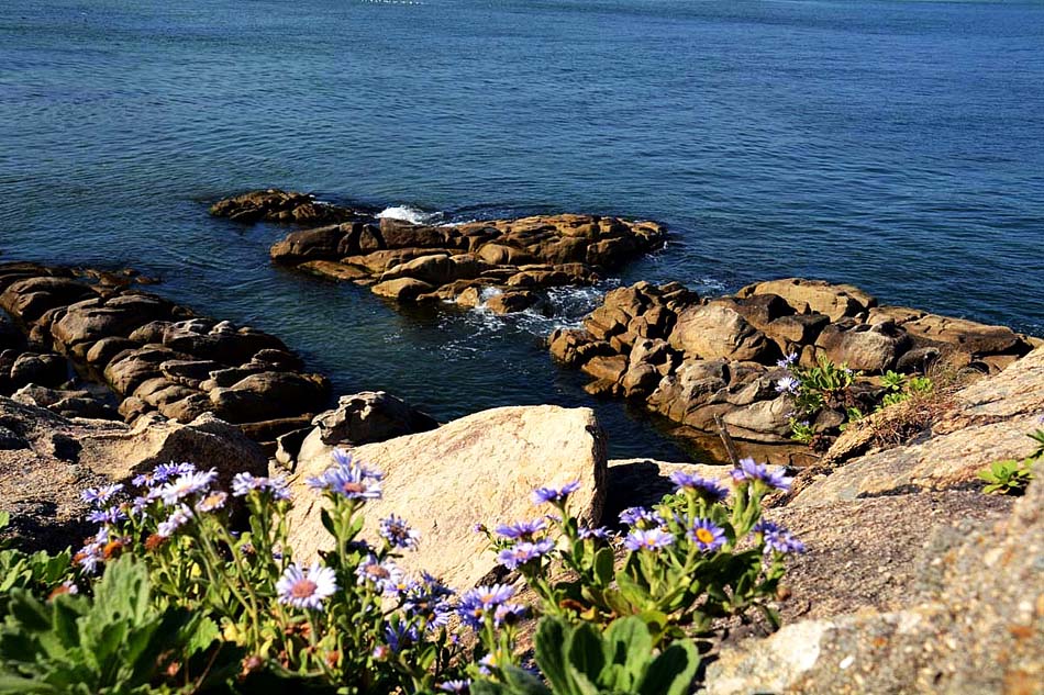 능파대 바위 사아사이에는 지금 해국이 아름답게 피어 있다.