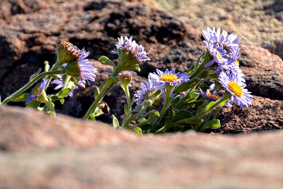 해국은 바닷가 바위에 붙어 세찬 바람을 자극삼아 꽃을 피운다. 바닷바람 때문에 키가 크지 못하고
