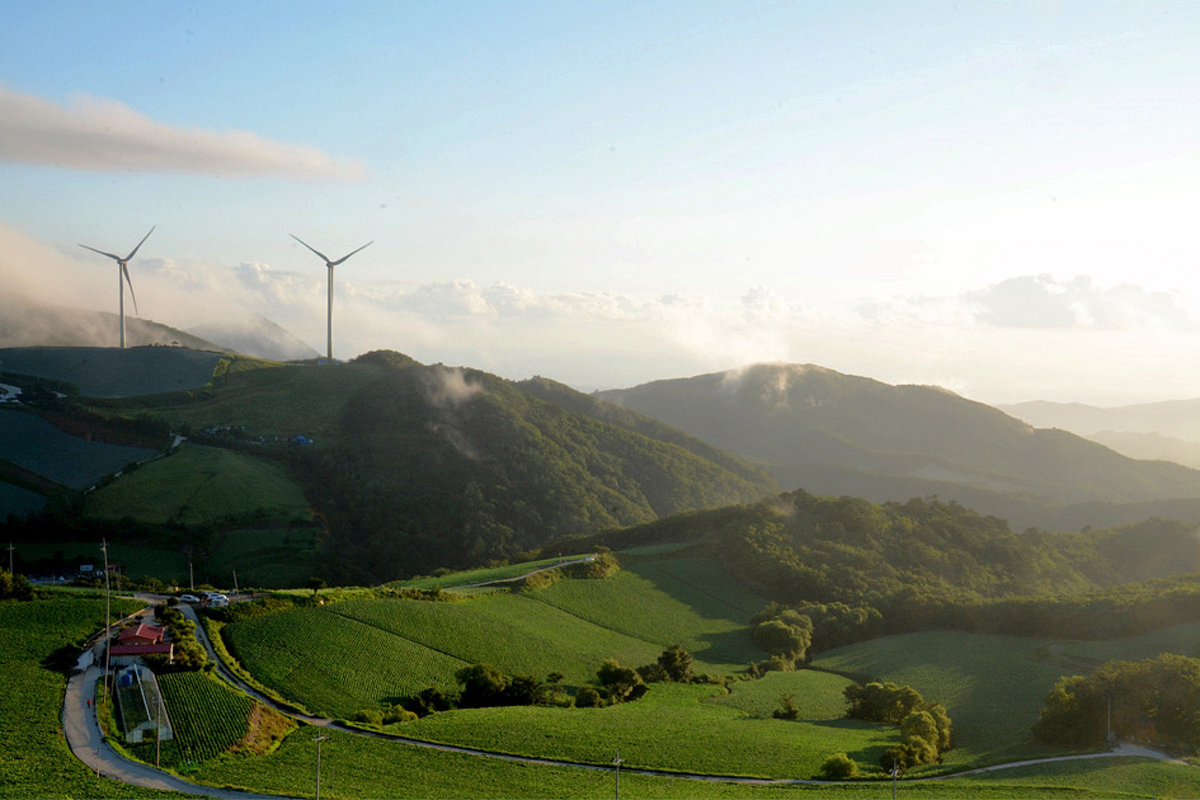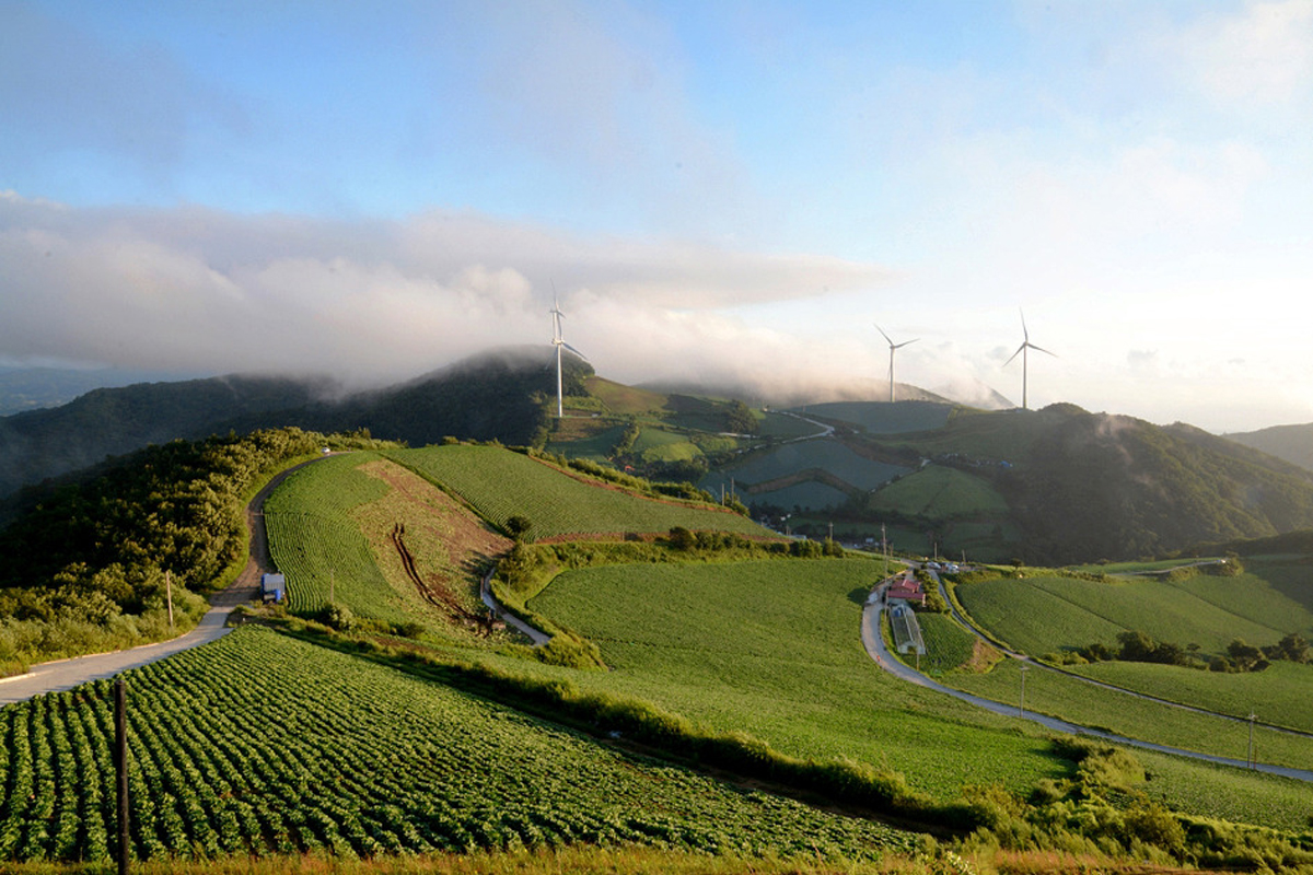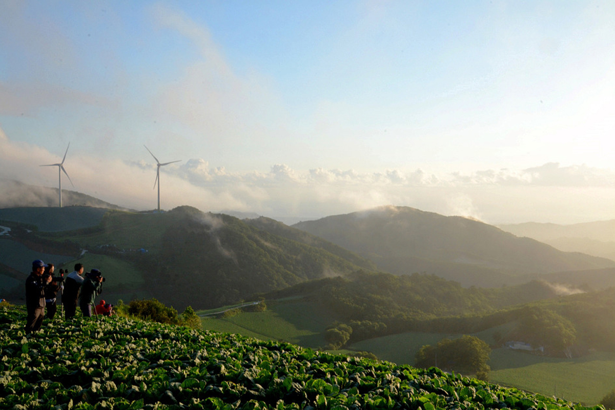 여름에는 채소밭, 겨울에는 풍력발전기와 어울어진 풍광이 일년 내내 다양한 풍경을 연출하고 있다.