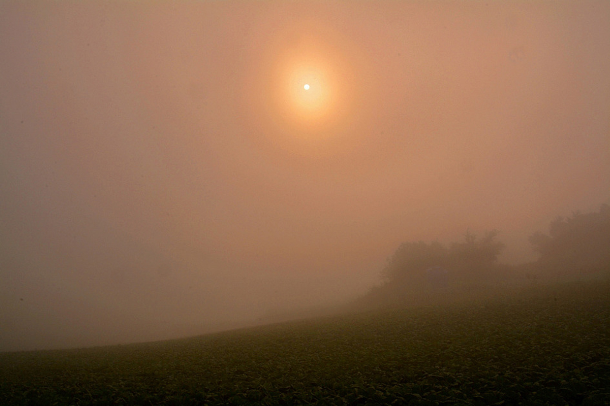 ▼ 해가 중천에 떠오르도록 짙은 운무(雲霧)가 시계를 가로막고 있다.. ▼