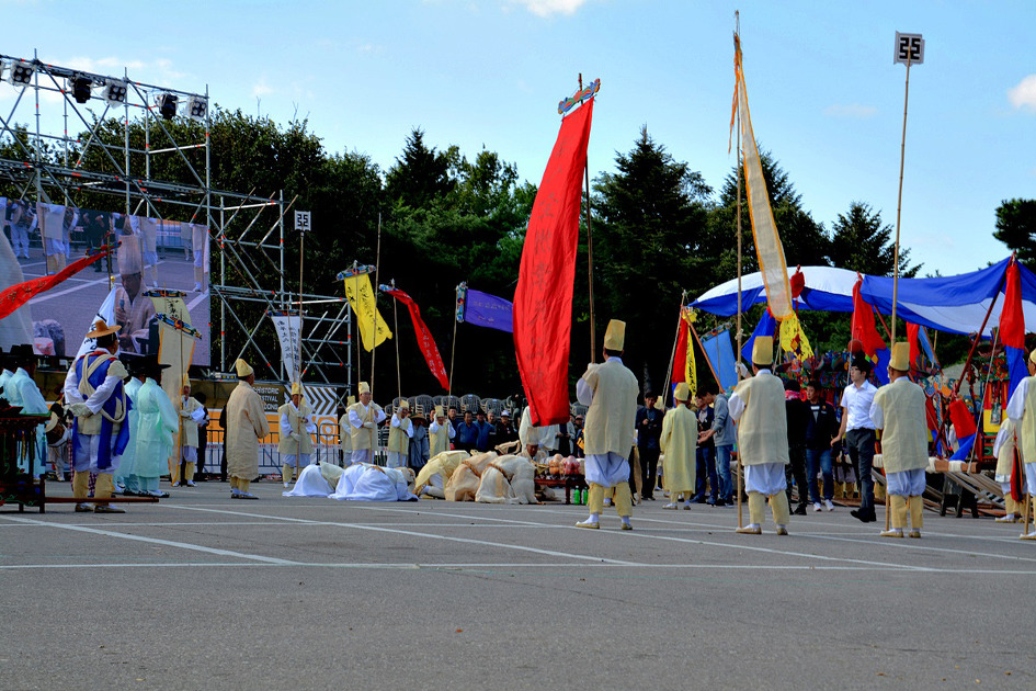 노제는 발인할 때 또는 장지까지 가는 길목 노천에서 하는 제사지만 어디까지나 재현행사인만큼 행사장 광장에서 펼쳐졌다.