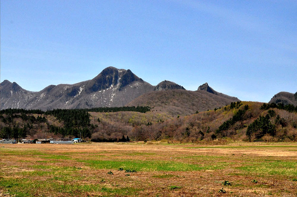 ▼ 250만년전 생성되었다는 나리분지에서 바라본 나리봉(813m)봉 ▼
