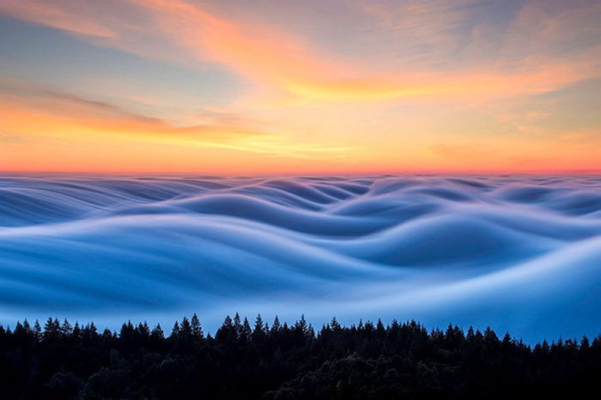 낮과 밤을 가리지 않고 무려 8년을 '안개' 사진 촬영에 올인한 끝에 그는 마치 파도처럼 일렁이는