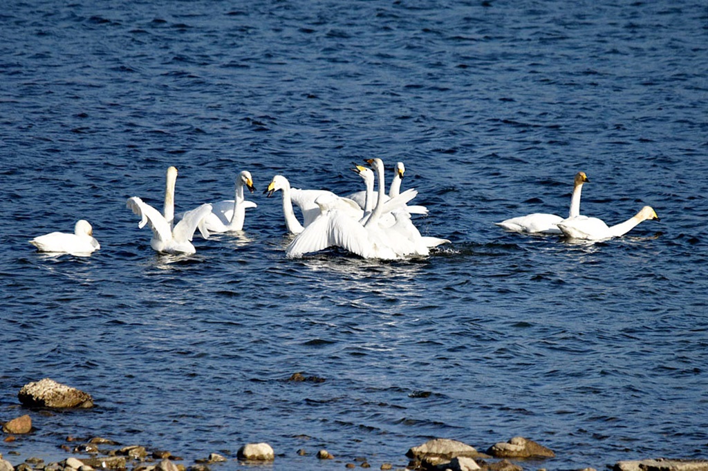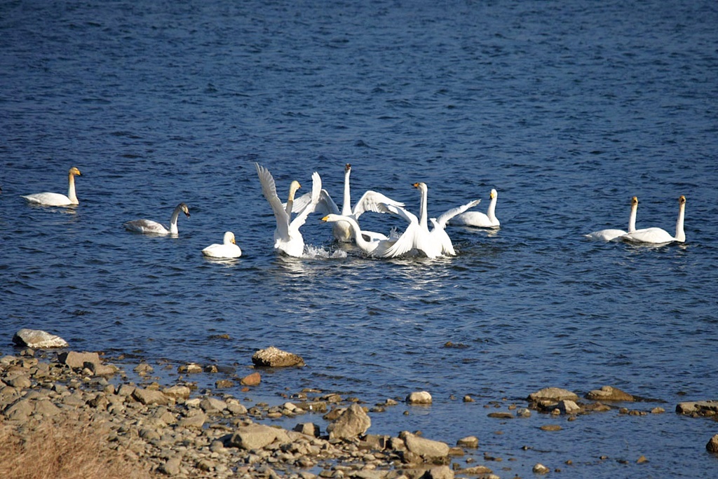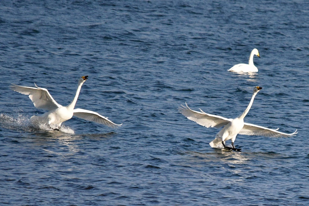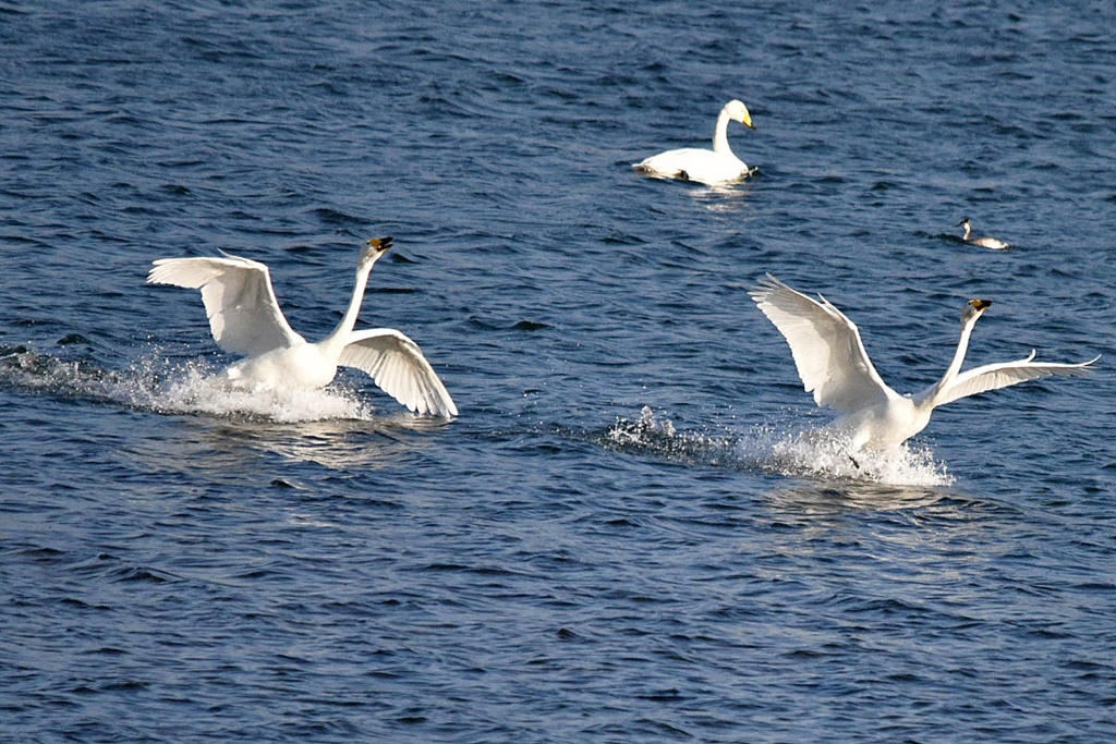 이제 본격적으로 월동을 시작하는 고니들의 활동이 제법 활발해지면 숫자도 늘고 간헐적으로 비상과 착수,