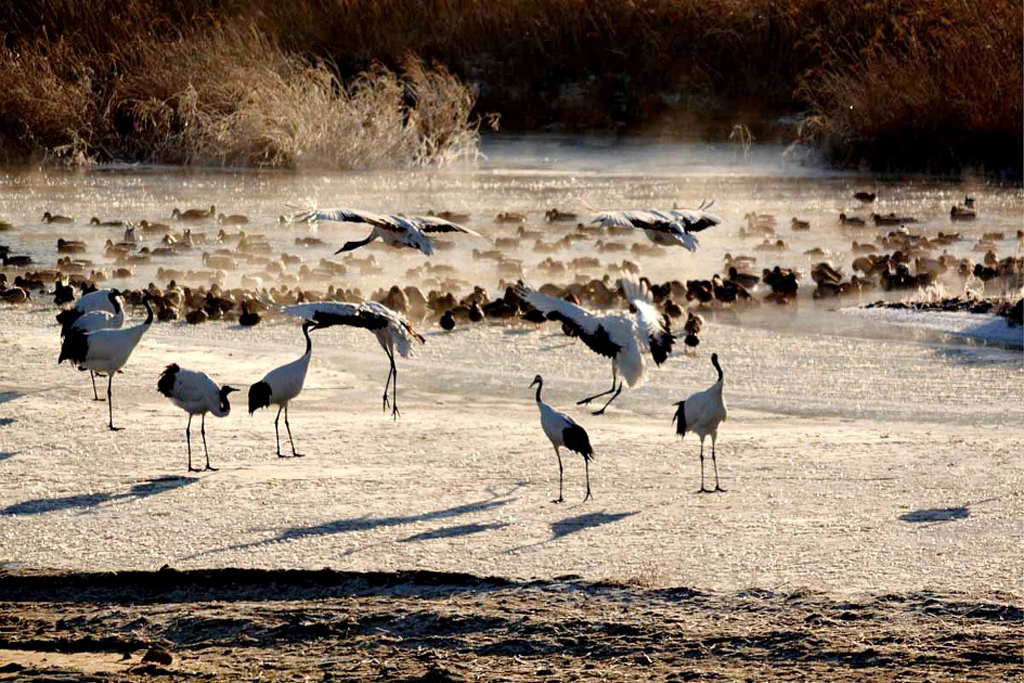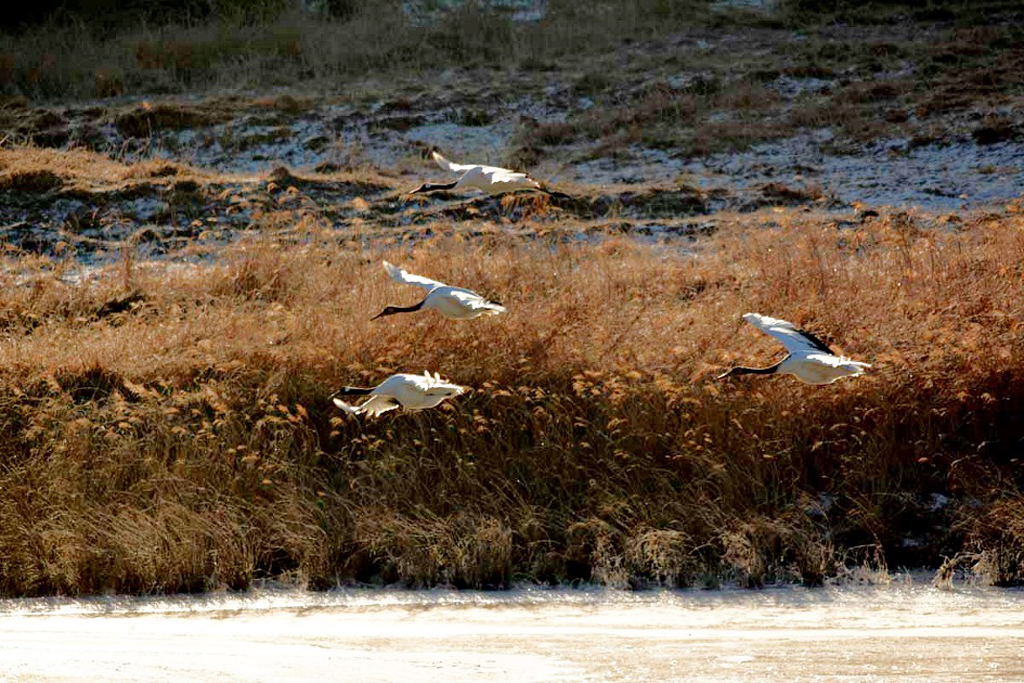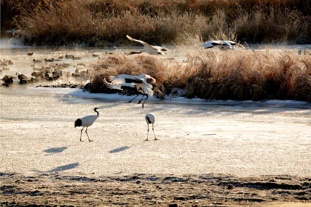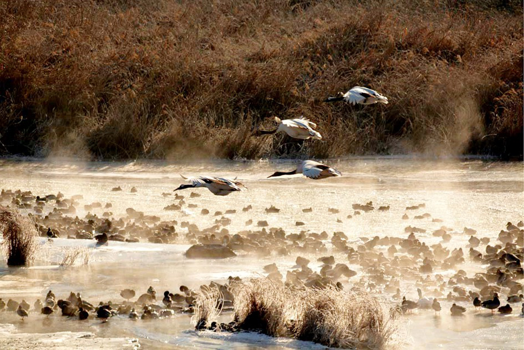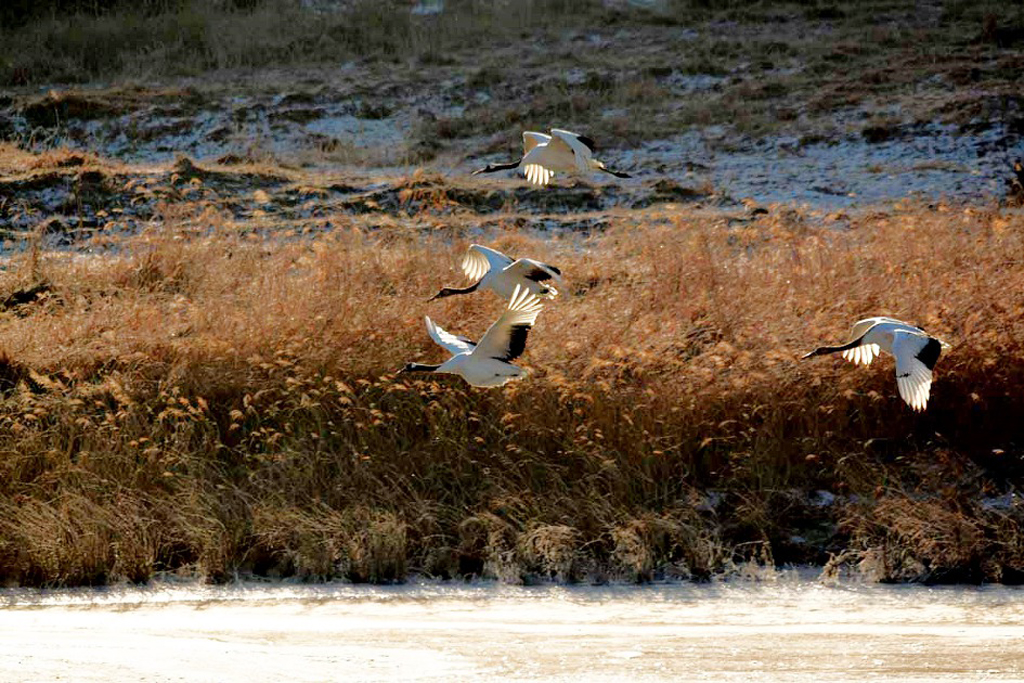 우아하게 비상과 착지, 착수를 반복하며 월동을 하고 있는 두루미들의 모습은 너무도 우아하고 아름답습니다.