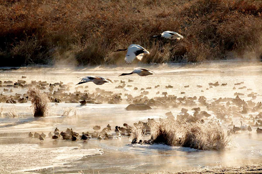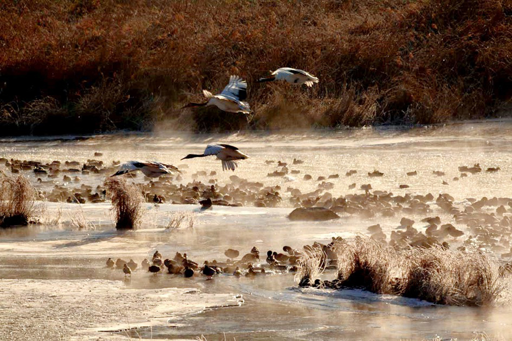 철새 두루미들이 시베리아, 몽골, 일본 북해도등으로부터 날아와 월동을 하고 있습니다. 드넓은 철원 평야에서